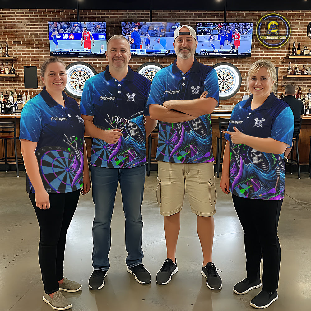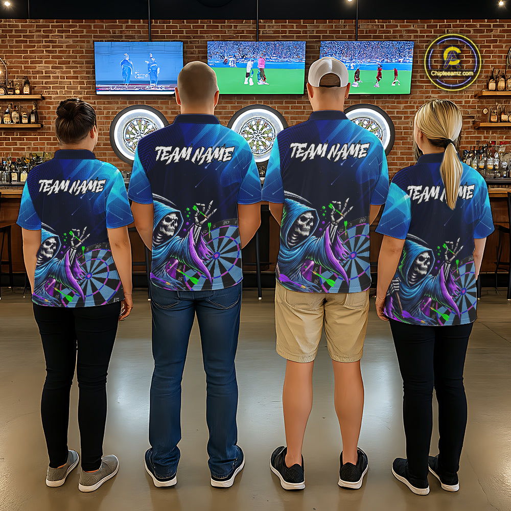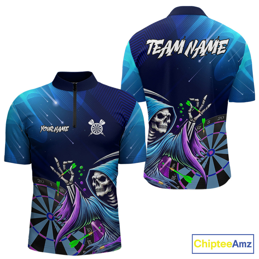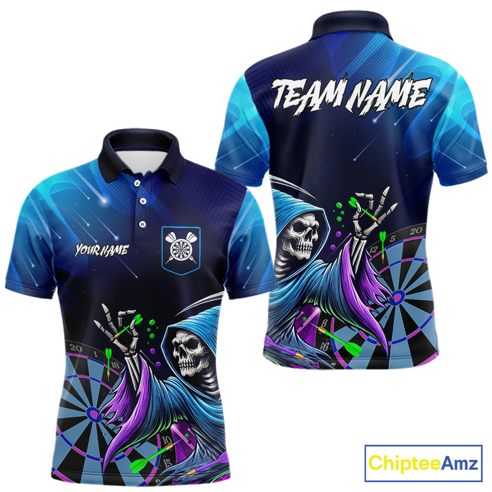 Funny Grim Reaper Blue Purple Galaxy Dart Shirts With Pocket Option For Men TDM5490