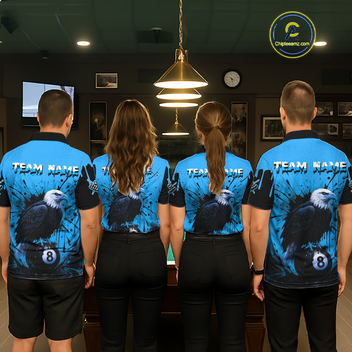 Blue 8 Ball Pool Eagle Paint Splash Billiard Shirt For Men Custom Billiard Jersey Polo & 1/4 Zip TDM5494
