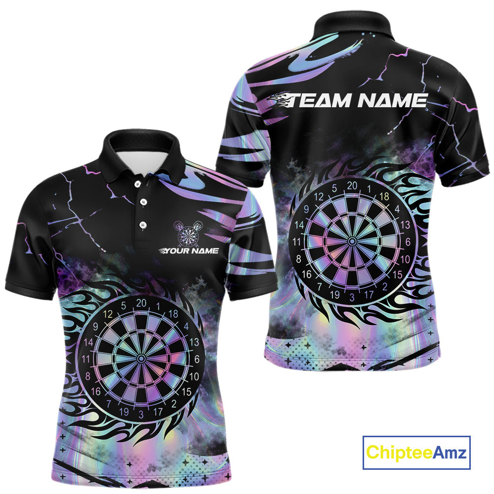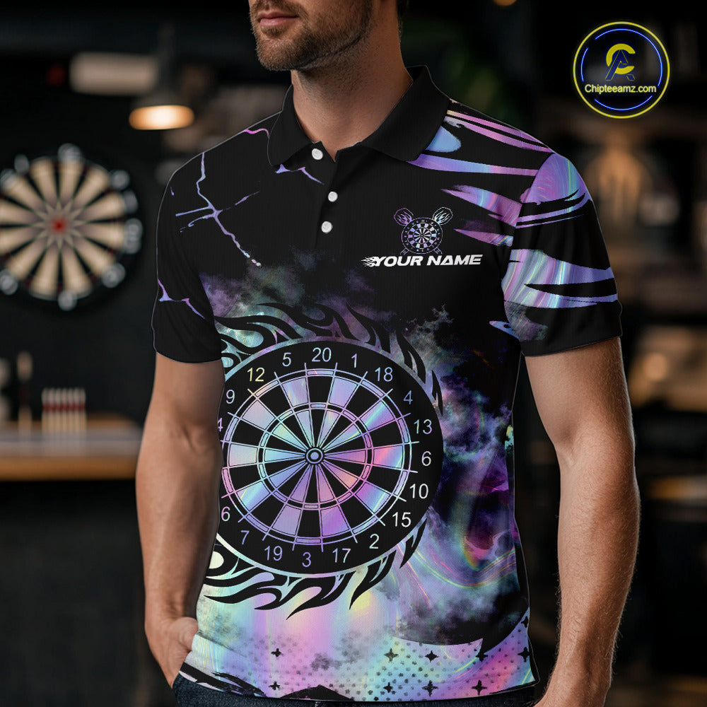 Holographic Flaming Dartboard Custom Darts Shirt For Men, Darts Jersey Team Polo & 1/4 Zip TDM5502