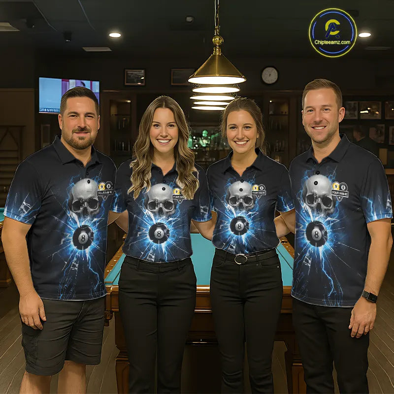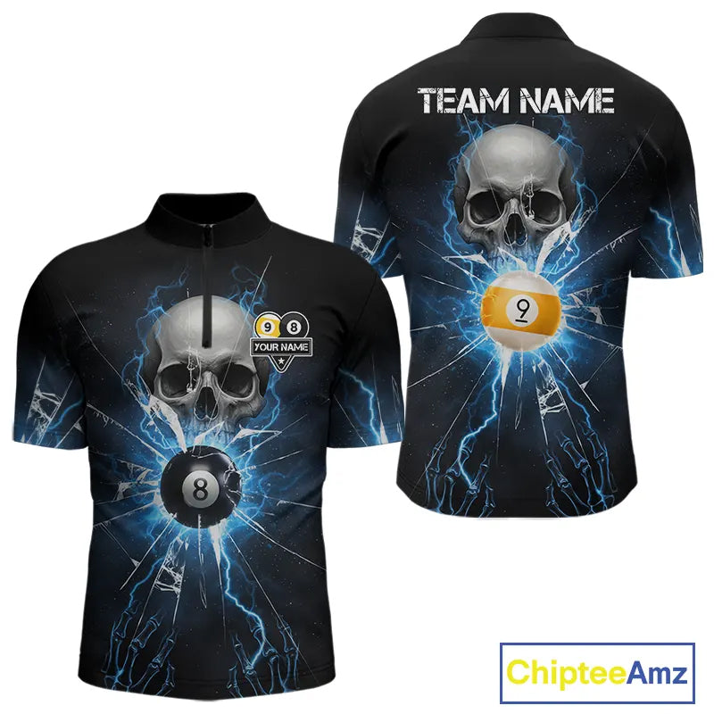 Blue Billiard 8 Ball & 9 Ball Skull Pool Shirt For Men Custom Glass Break Billiard Team Jersey TDM5513