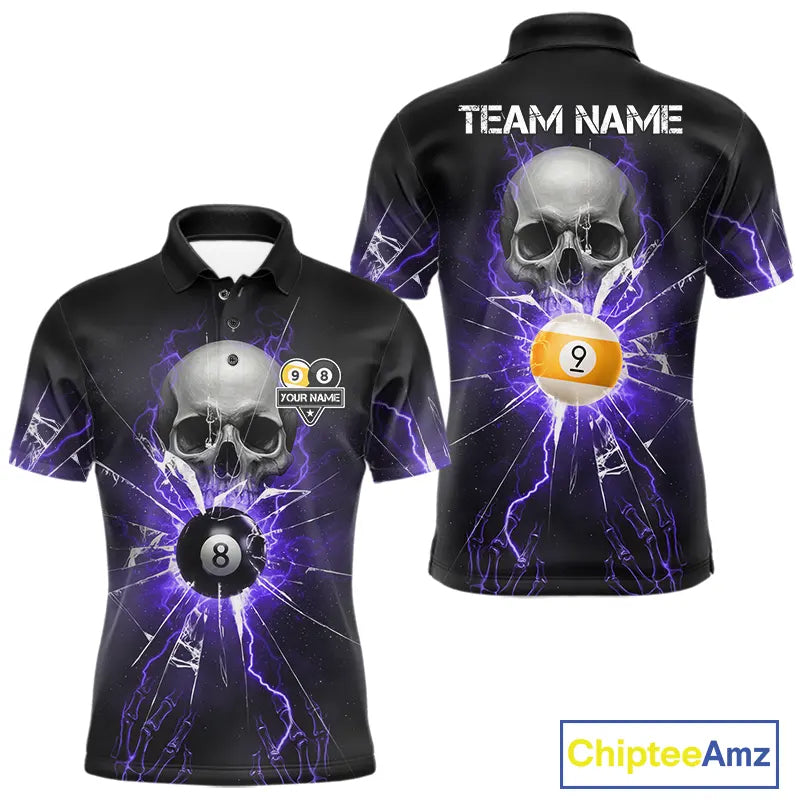 Purple Billiard 8 Ball & 9 Ball Skull Pool Shirt For Men Custom Glass Break Billiard Team Jersey TDM5514