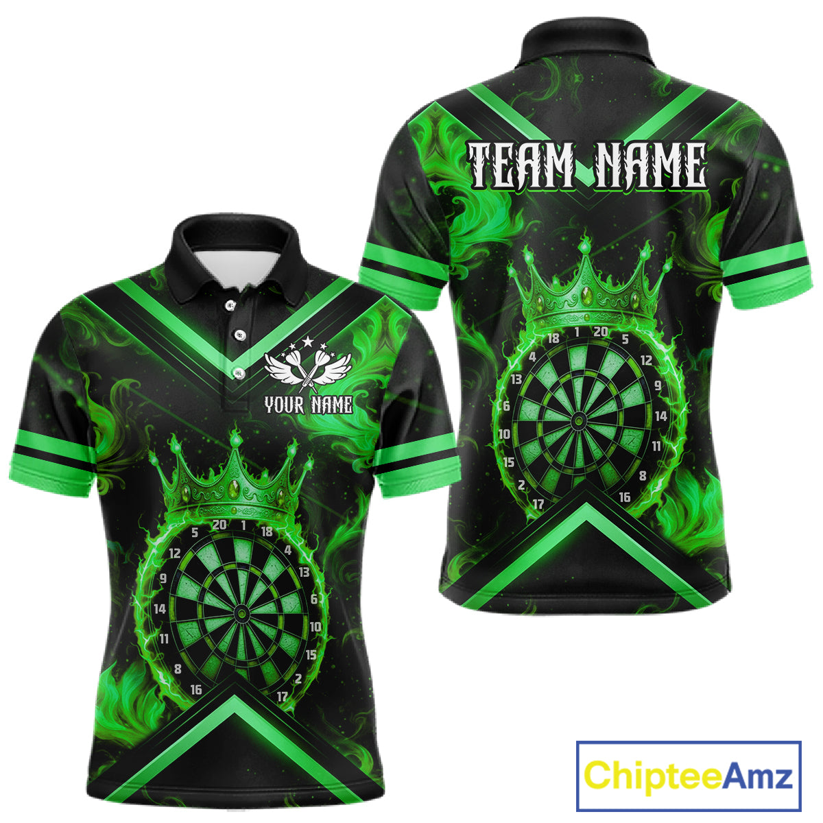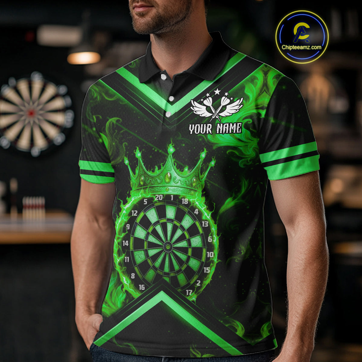 Black And Green Dartboard Crown Darts Shirt For Men Custom Dart Jerseys Team Polo & 1/4 Zip TDM5527