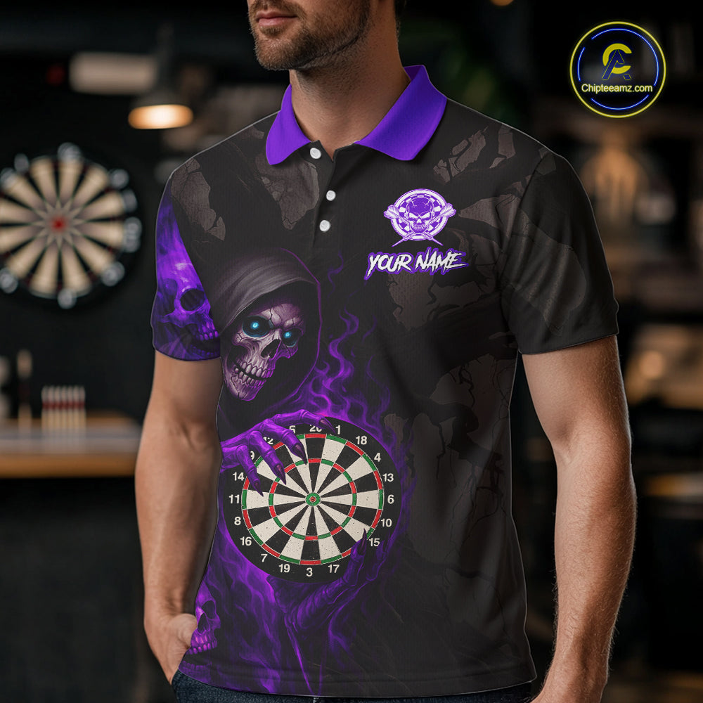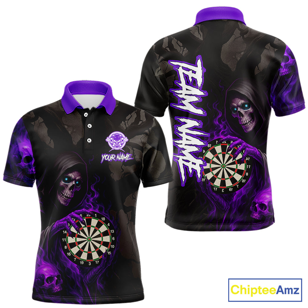 Purple Grim Reaper Flame Darts Shirt For Men Custom Skull Darts Jersey Team Polo & Quarter Zip TDM5530