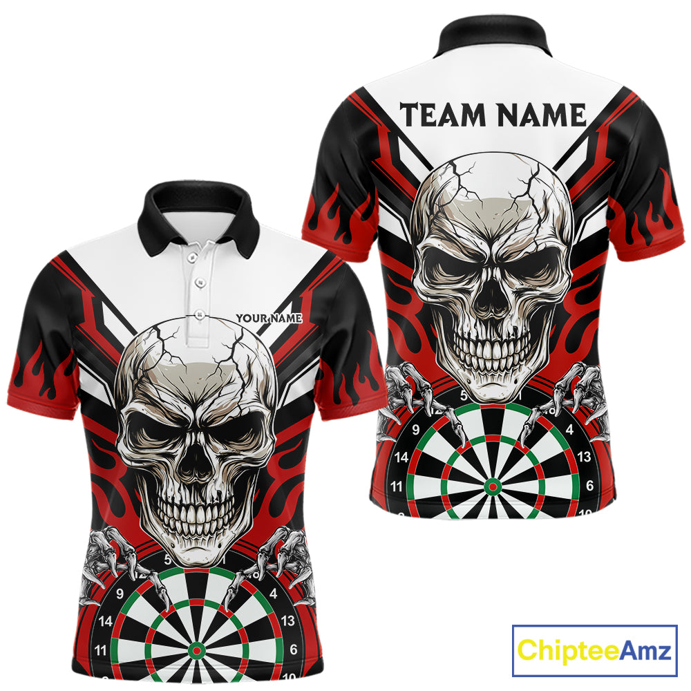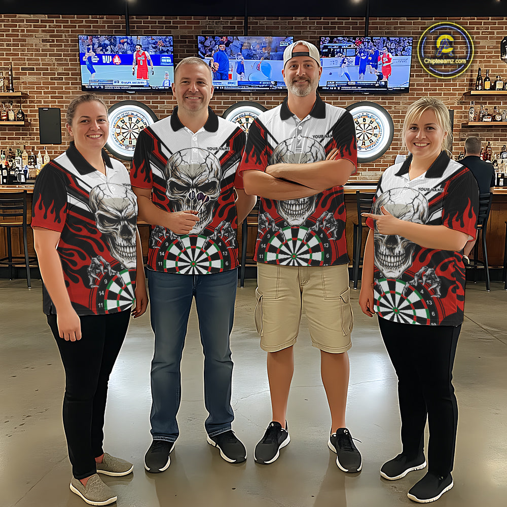 Personalized Skull Darts Polo & Quarter Zip Custom Darts Shirt For Men, Darts Team Jersey |Red TDM5535
