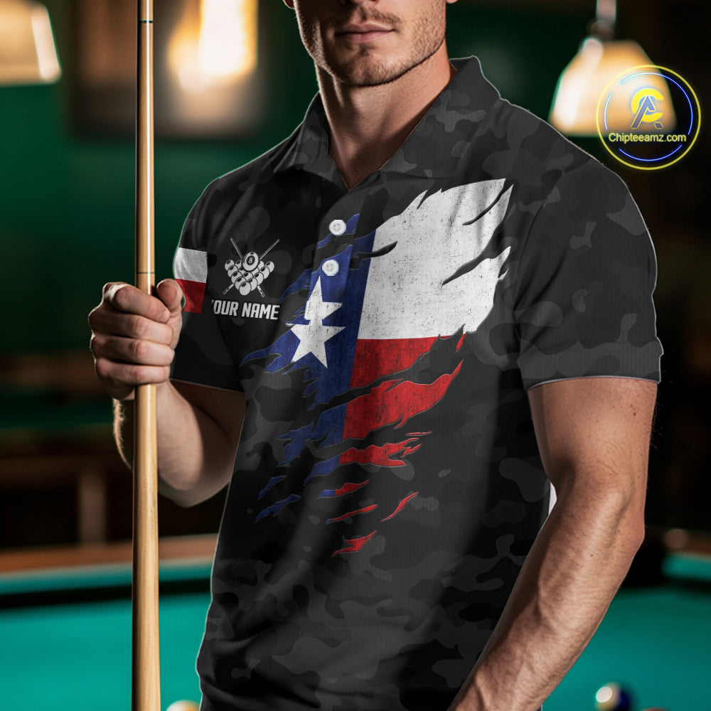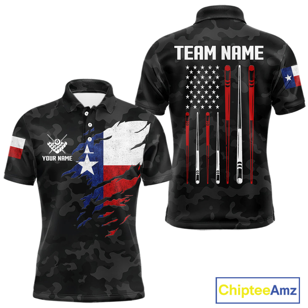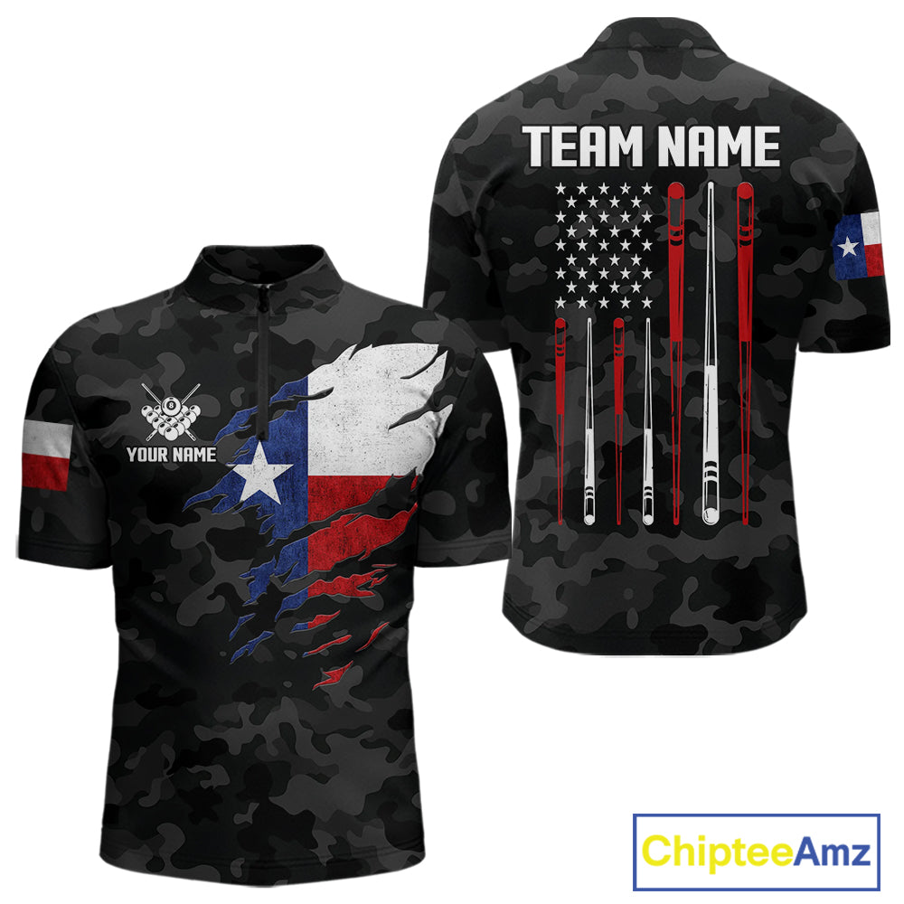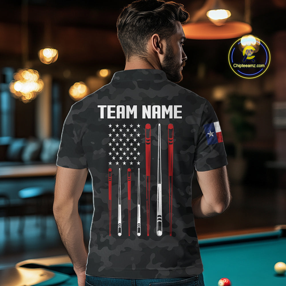 Personalized Texas American Flag Camo Billiard Shirt For Men Custom Patriotic Pool Team Jersey TDM5542