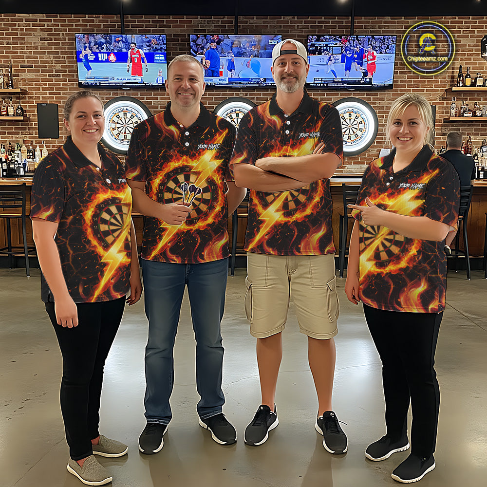 Personalized Dartboard Fire Flame Gold Thunder Men's Darts Shirt Custom Darts Team Jersey TDM5556
