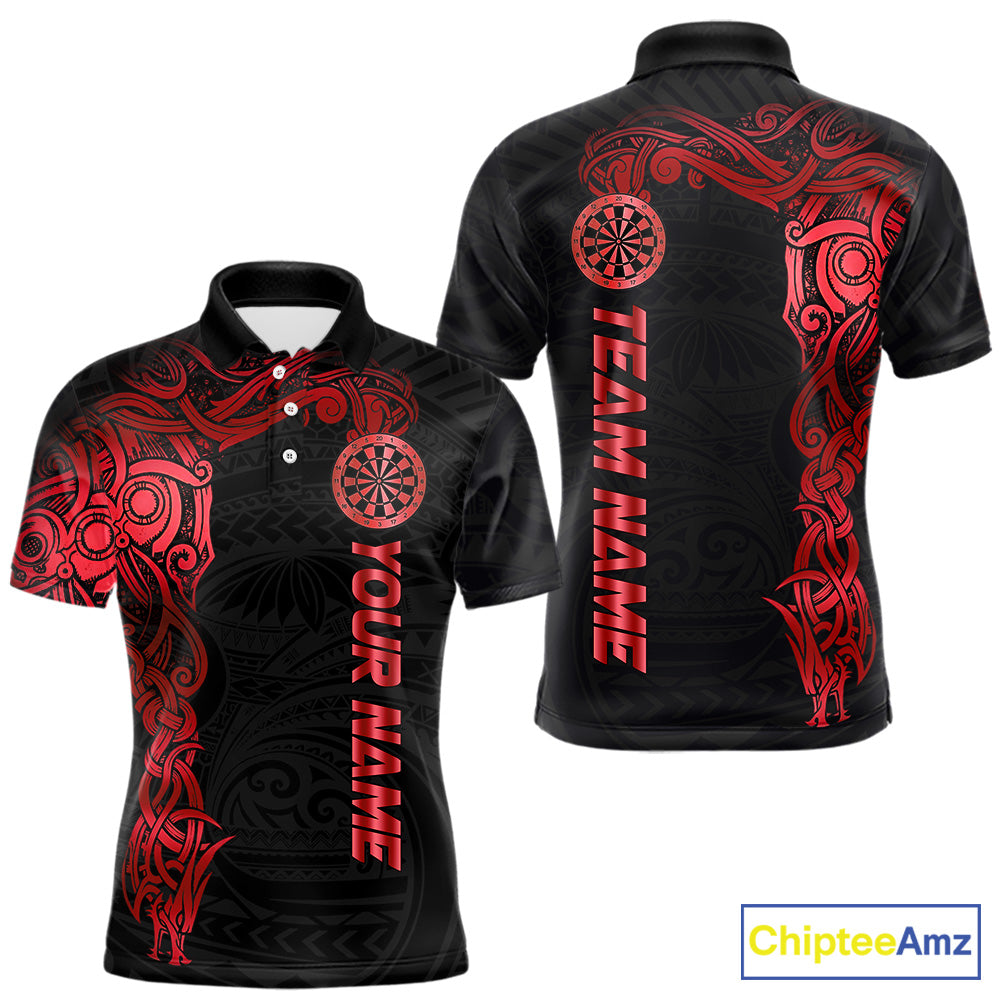 Personalized Black And Red Tribal Darts Shirt For Men Custom Darts Jersey Team Polo & Quarter Zip TDM5558