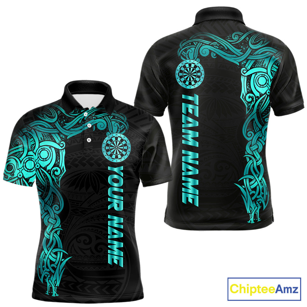 Black And Turquoise Tribal Darts Shirt For Men Custom Darts Jersey Team Polo & Quarter Zip TDM5559