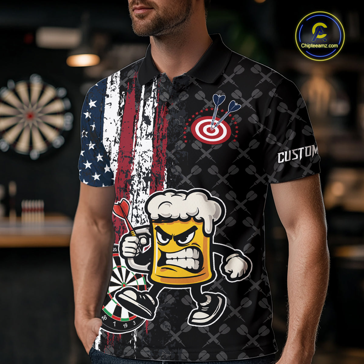 Funny Angry Beer Grunge American Flag Darts Shirt For Men Custom Patriotic Darts Team Jersey TDM5563