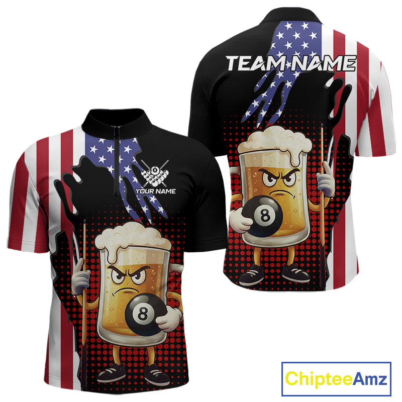 American Flag Funny Beer 8 Ball Billiard Shirt For Men Custom Patriotic Pool Team Jersey TDM5577