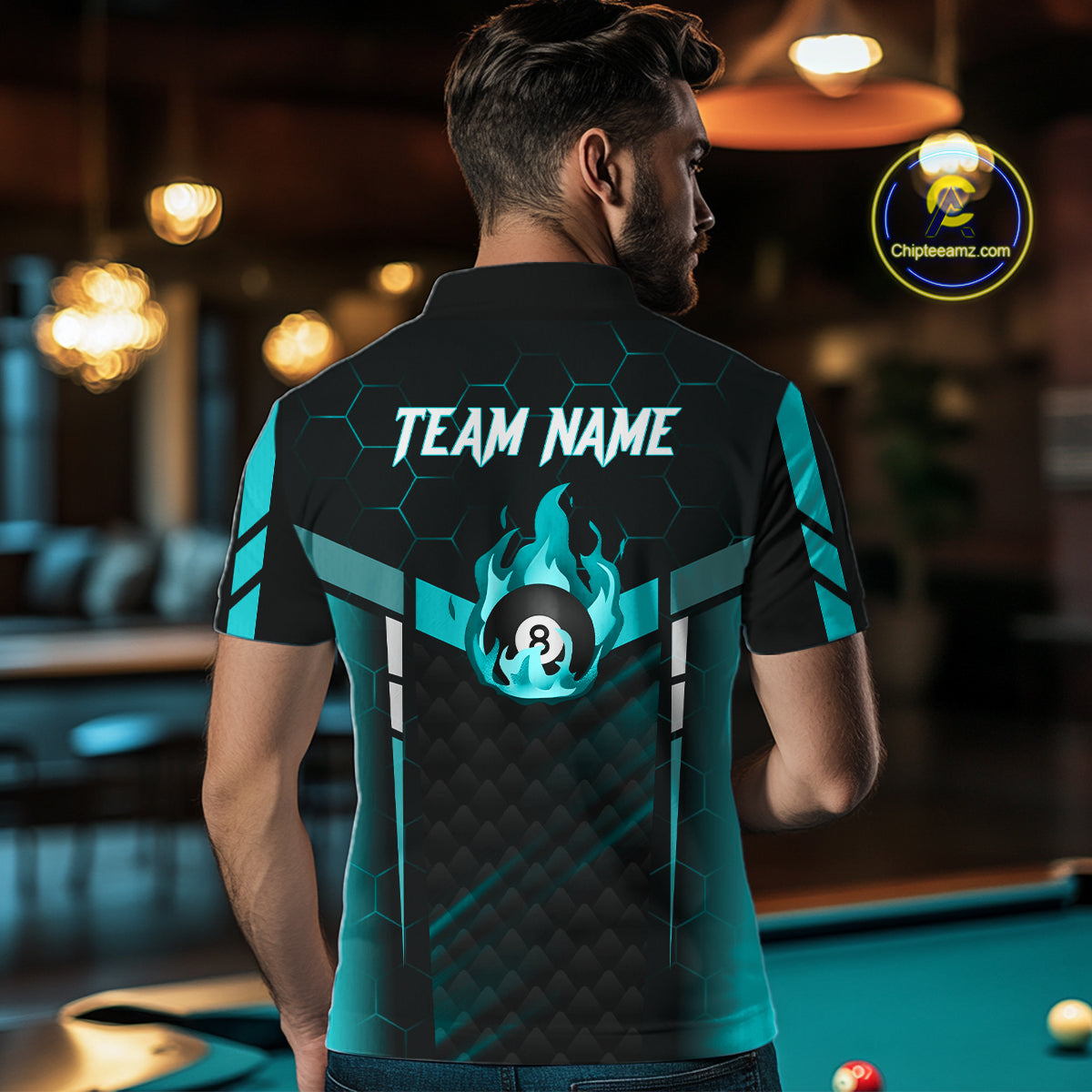 Personalized Turquoise 8 Ball Flame Billiard Shirt For Men, Billiard Team Jersey Polo & 1/4 Zip TDM5586