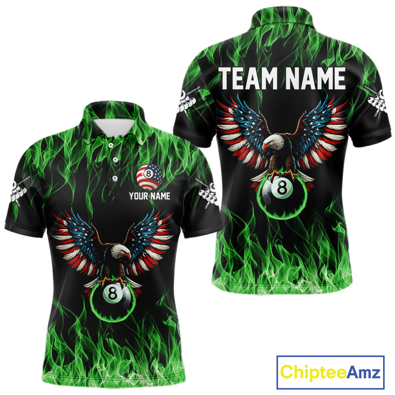 Green Flaming American Flag Eagle 8 Ball Billiard Shirt For Men Custom Patriotic Pool Team Jersey TDM5589