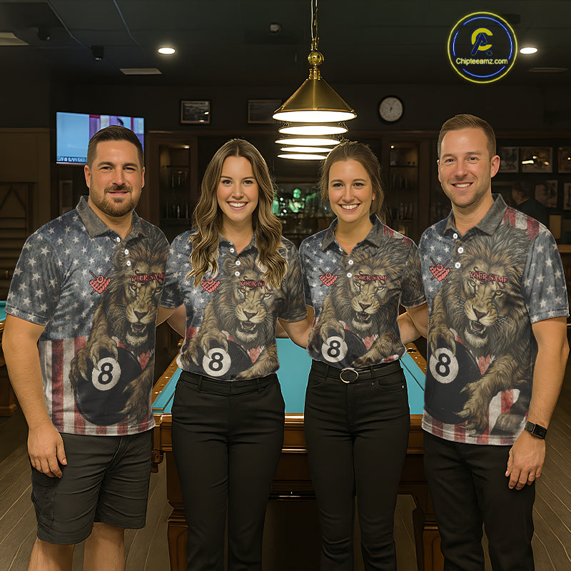Personalized Vintage American Flag Lion Billiard Shirt For Men, 8 Ball Pool Billiard Team Jerseys TDM5591