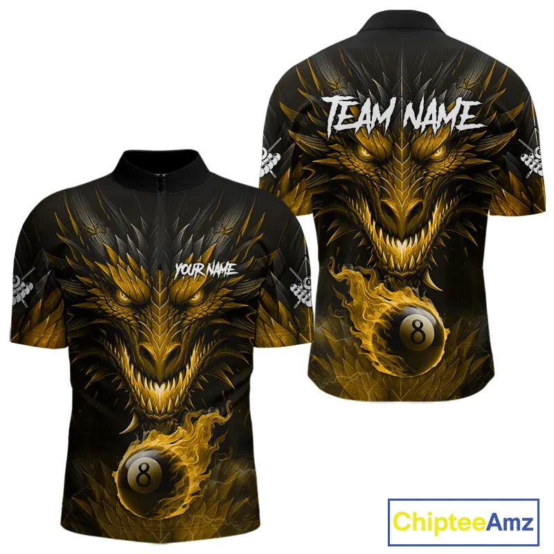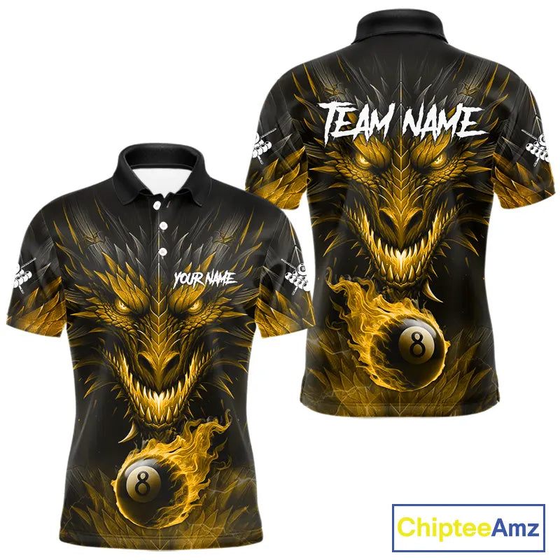 Personalized Dragon 8 Ball Fire Flame 3D Billiard Shirt For Men, Billiard League Team Jersey|Yellow TDM5595