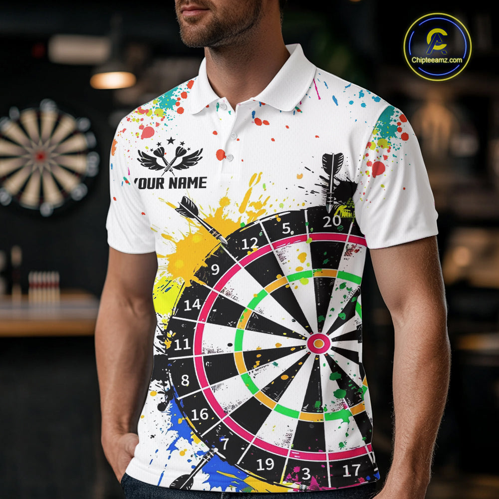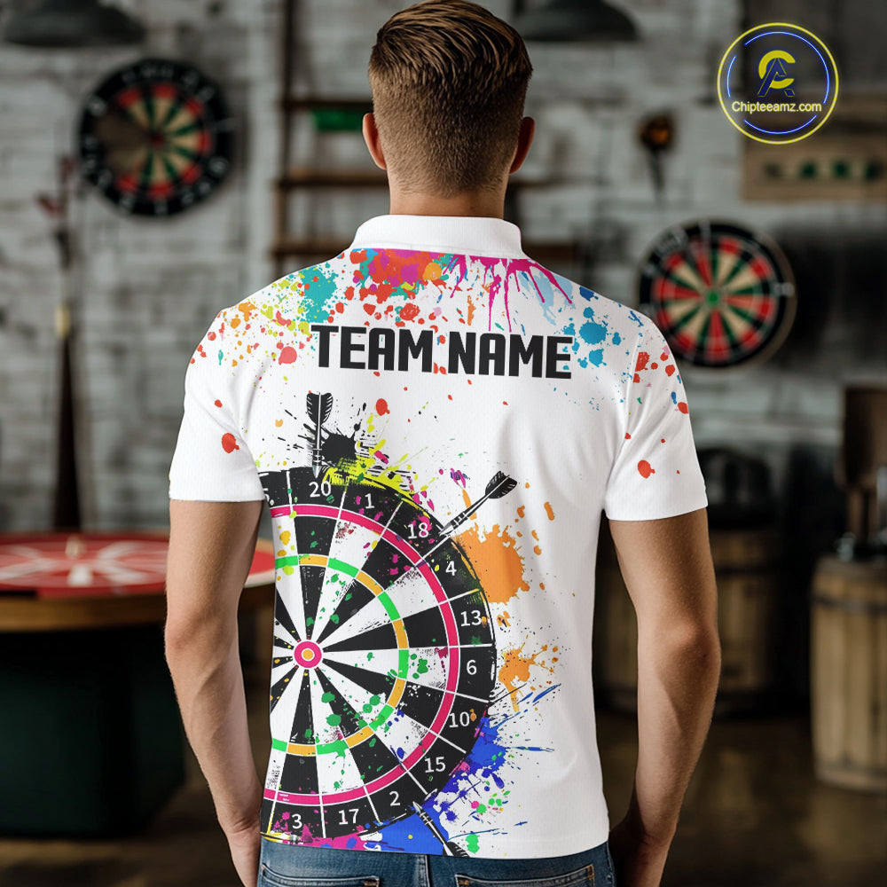 Funny Dartboard Colorful Paint Dart Shirt For Men Custom Darts Team Jersey Polo & 1/4 Zip |White TDM5623