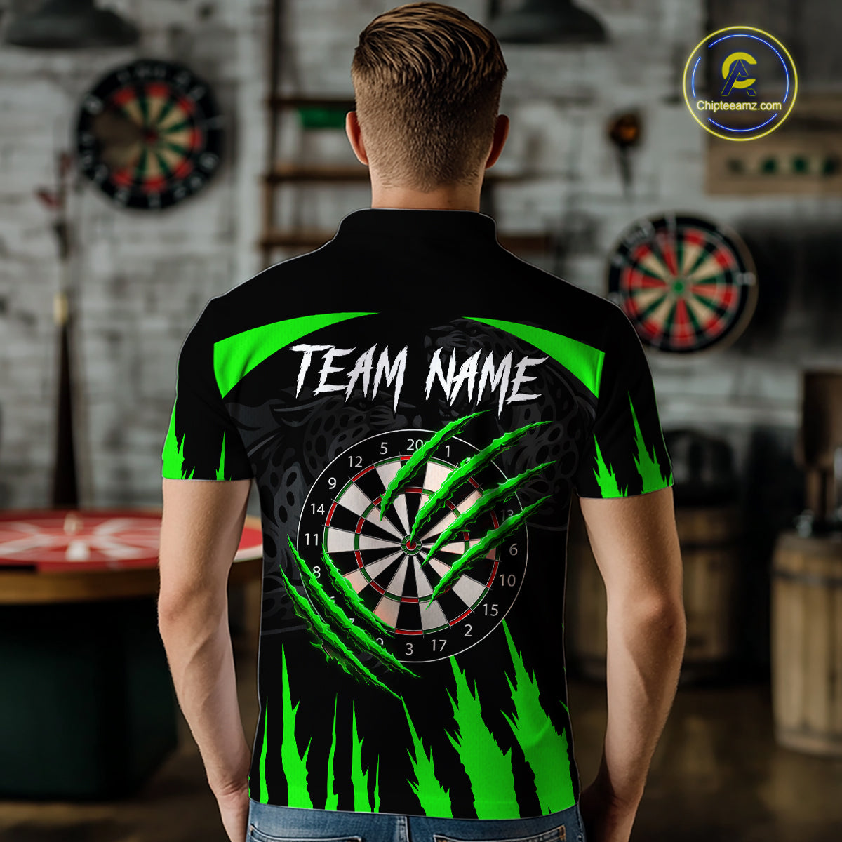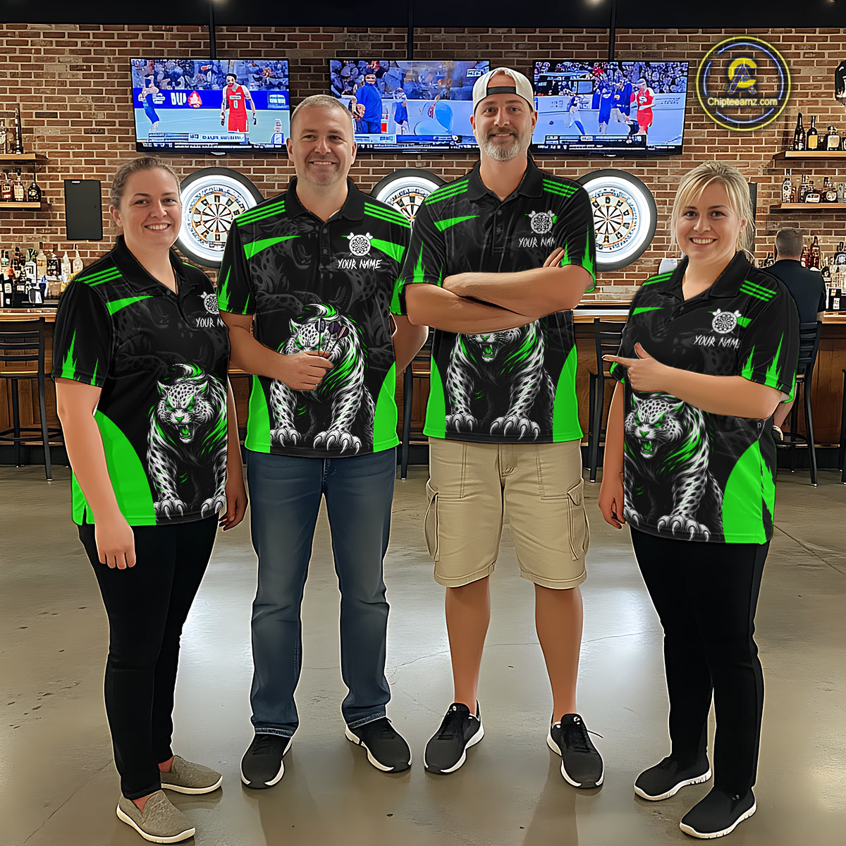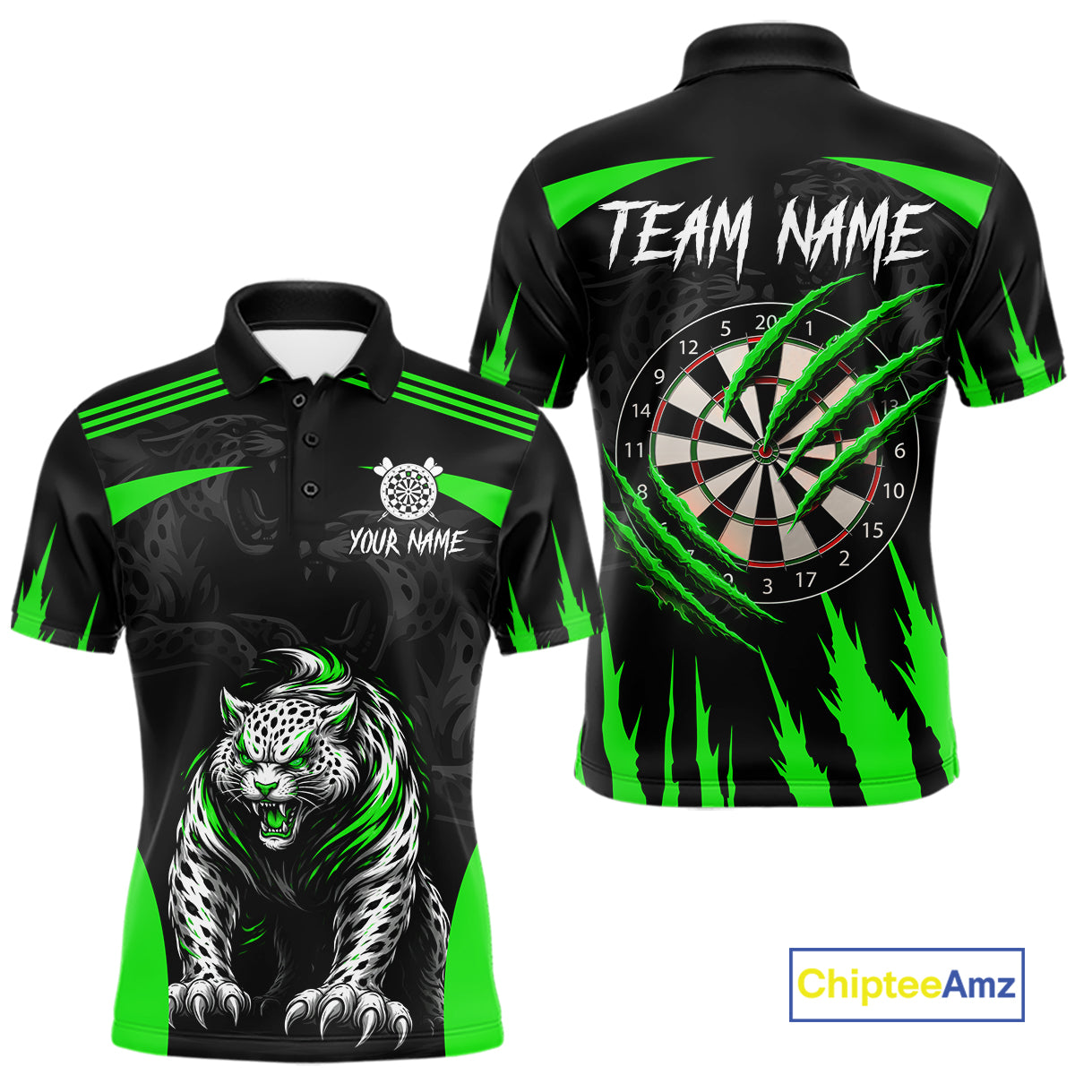 Black And Green Custom Leopard Darts Shirt For Men, Darts Team Jersey Polo & Quarter Zip TDM5627