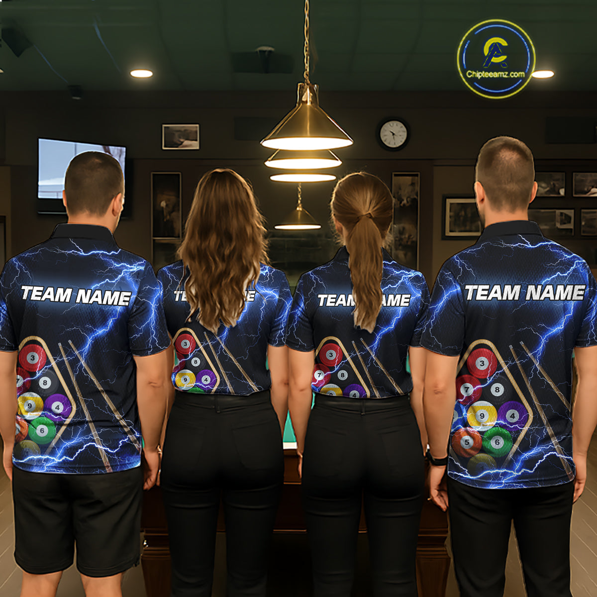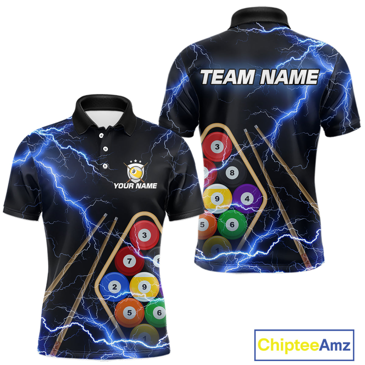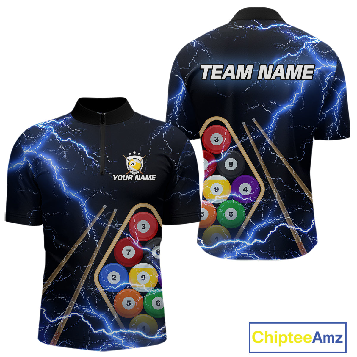 Blue 9 Ball Thunder Lightning Billiard Shirts For Men Custom 9 Ball Pool Team Jersey Polo, 1/4 Zip TDM5633