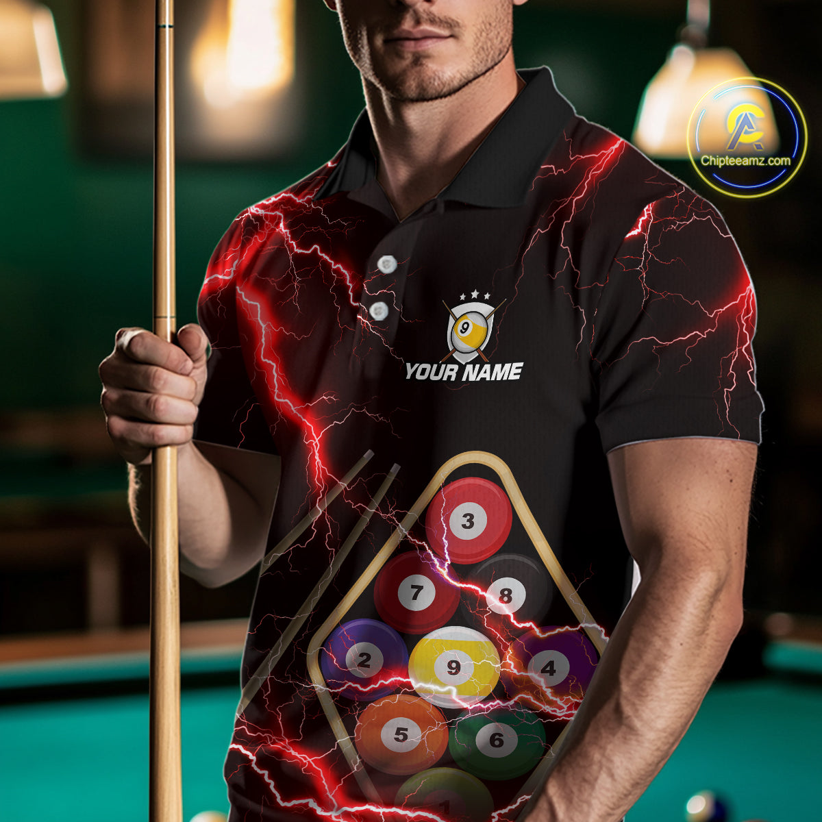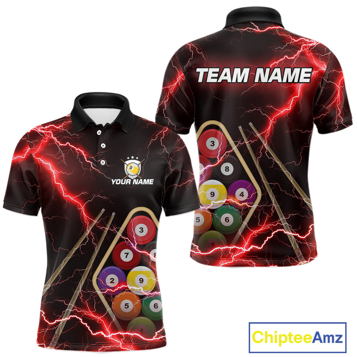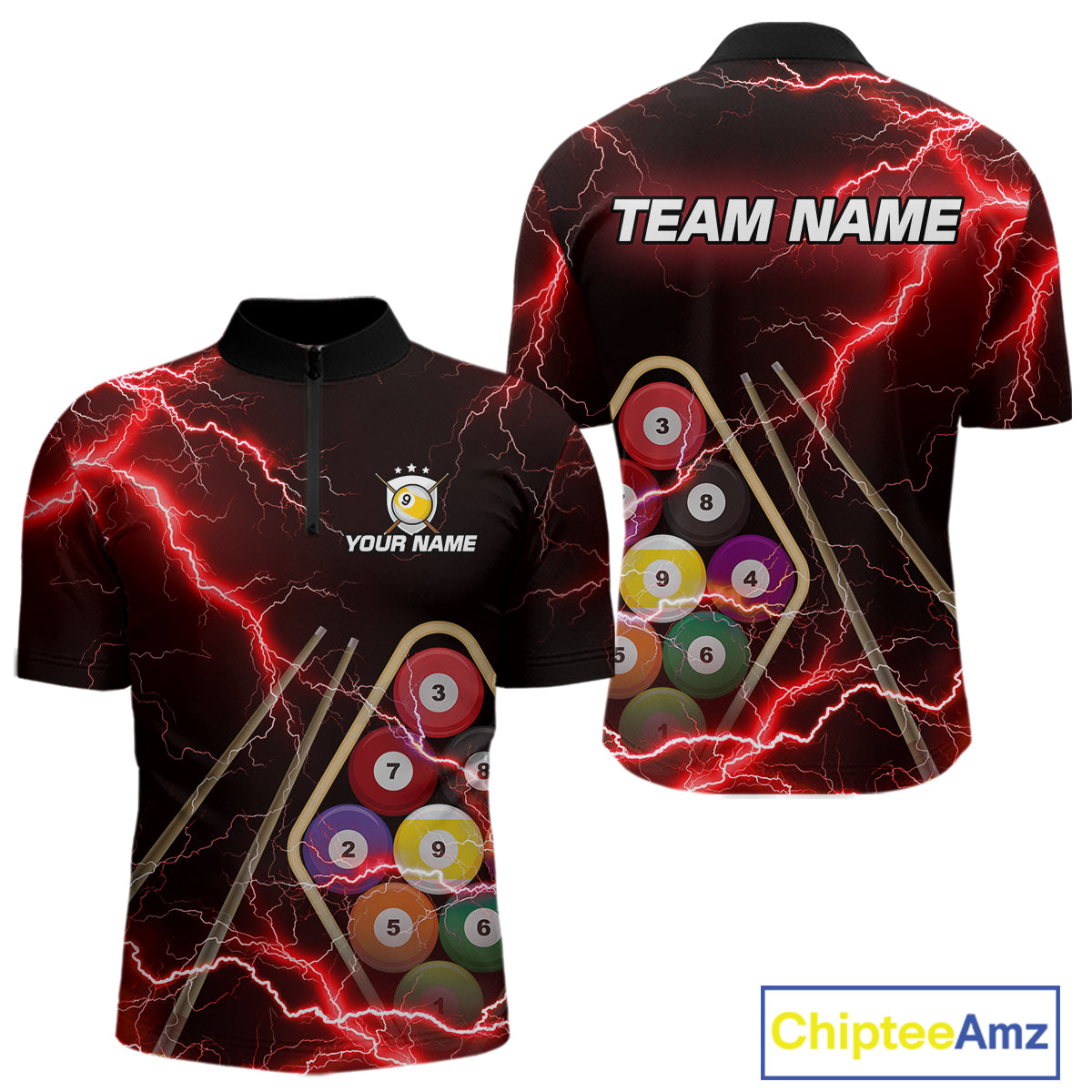 Red 9 Ball Thunder Lightning Billiard Shirts For Men Custom 9 Ball Pool Team Jersey Polo & 1/4 Zip TDM5635