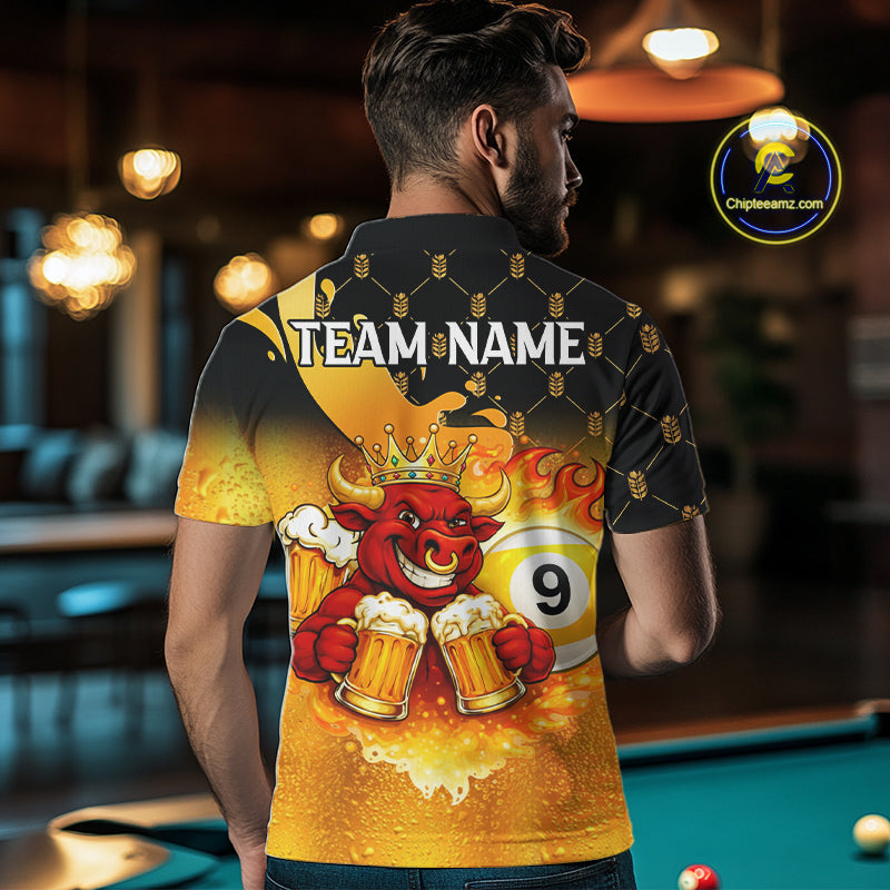 Funny Bull And Beer 8 Ball 9 Ball Billiard Shirt For Men Custom Billiard Team Jersey Polo, 1/4 Zip TDM5646
