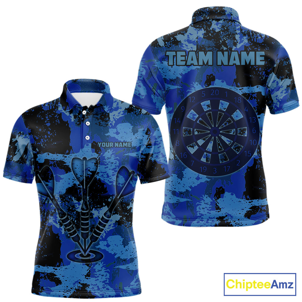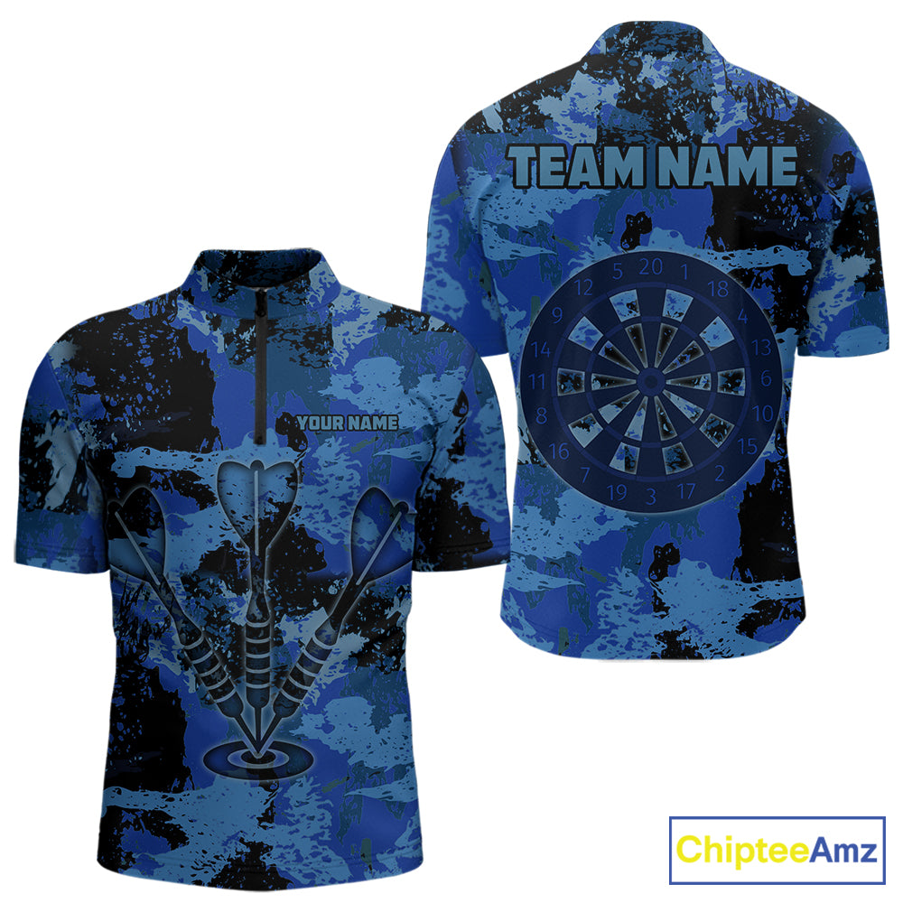 Custom Grunge Blue Camo Arrow Darts Shirts For Men, Retro Darts Jersey Team Polo & 1/4 Zip TDM5664