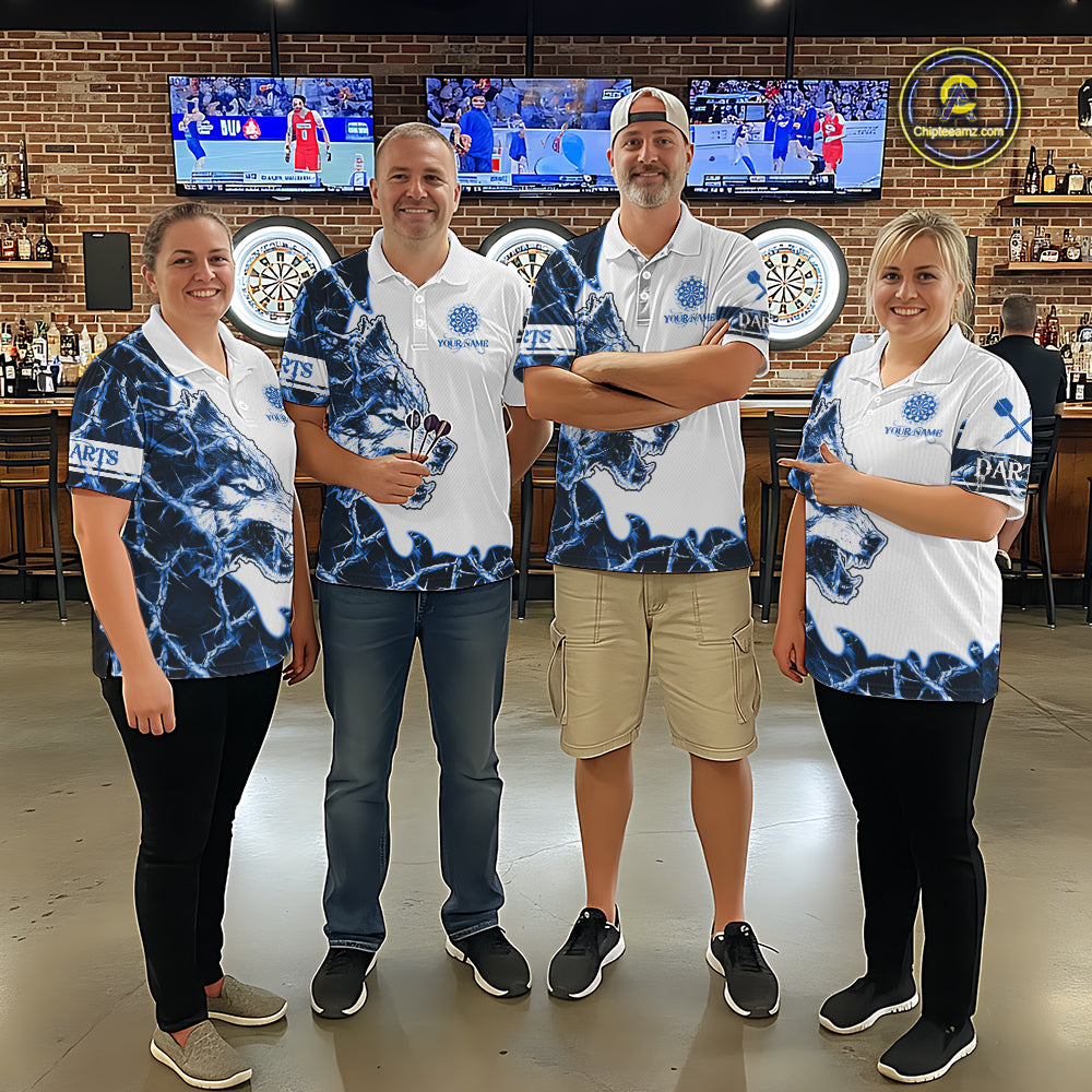 Blue Thorny Camo Wolf Dart Shirts For Men Custom Camouflage Darts Jersey Team Polo & 1/4 Zip Shirt TDM5667