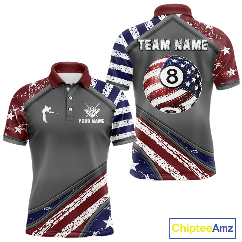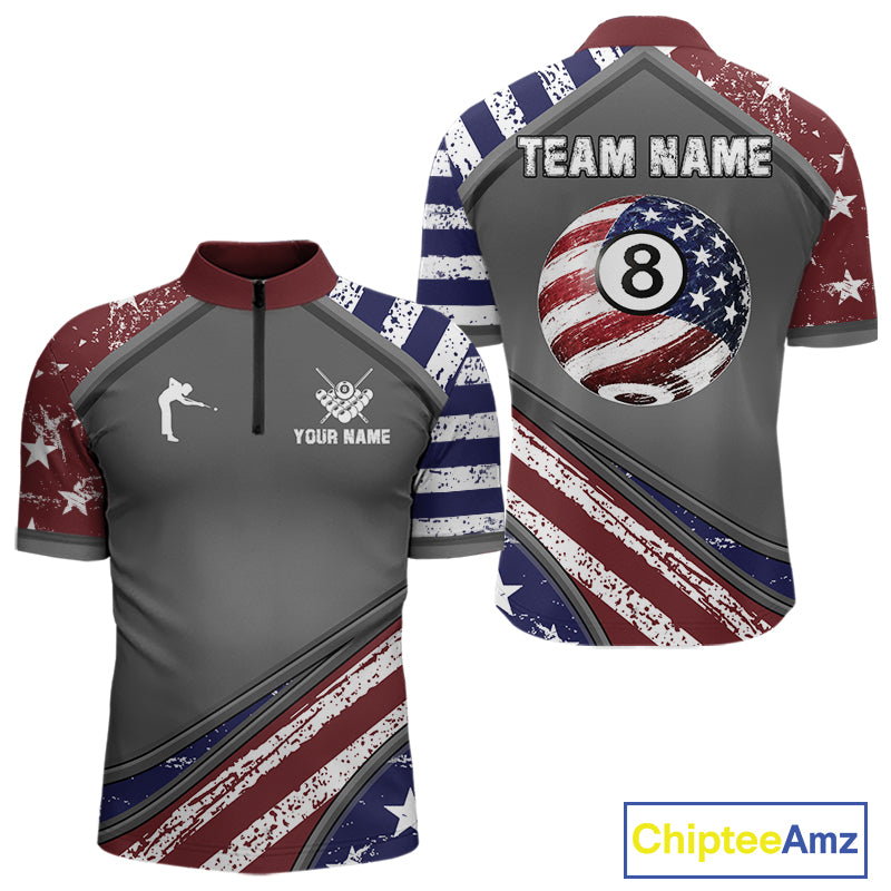 Personalized US Flag 8 Ball Pool Billiard Shirt For Men Custom Patriotic Billiard Team Jersey TDM5678