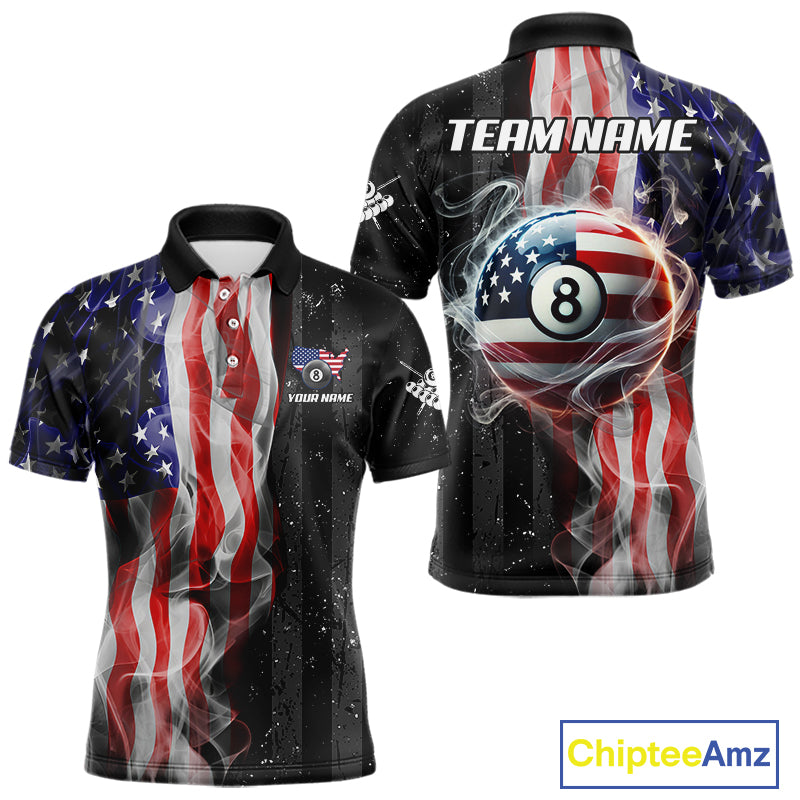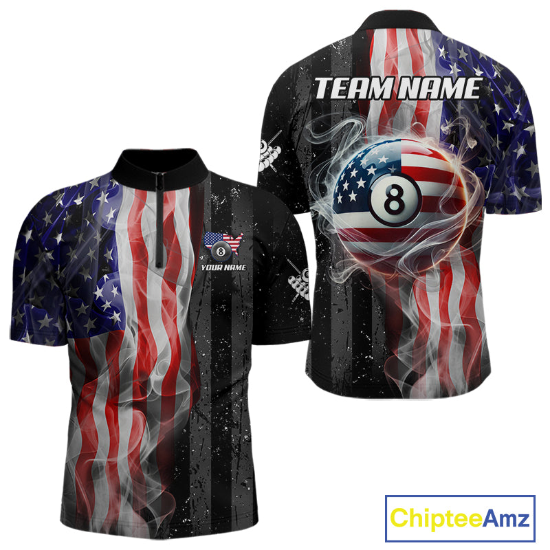 Personalized American Flag Smoke Billiard Jersey For Men, Patriotic 8 Ball Pool Billiard Shirt TDM5679