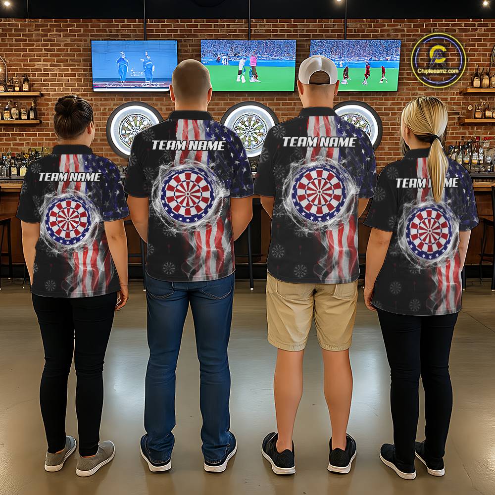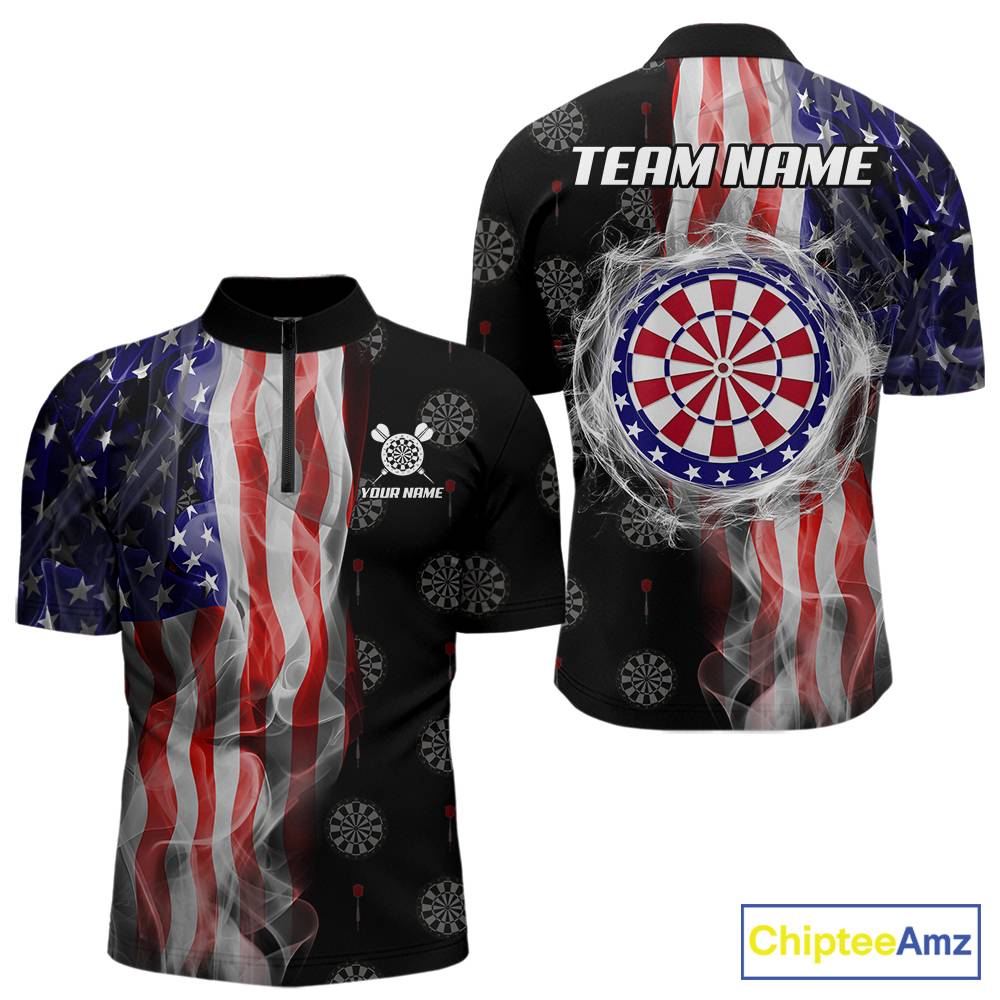 Personalized American Flag Smoke Darts Shirt For Men, Patriotic Darts Jersey Team Polo & 1/4 Zip TDM5680
