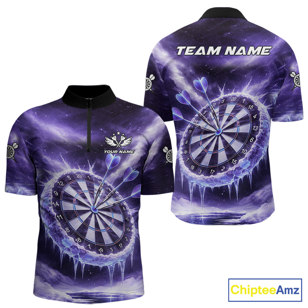 Personalized Purple Dartboard Icy Darts Shirt For Men Custom Darts Jersey Team Polo & 1/4 Zip TDM5681
