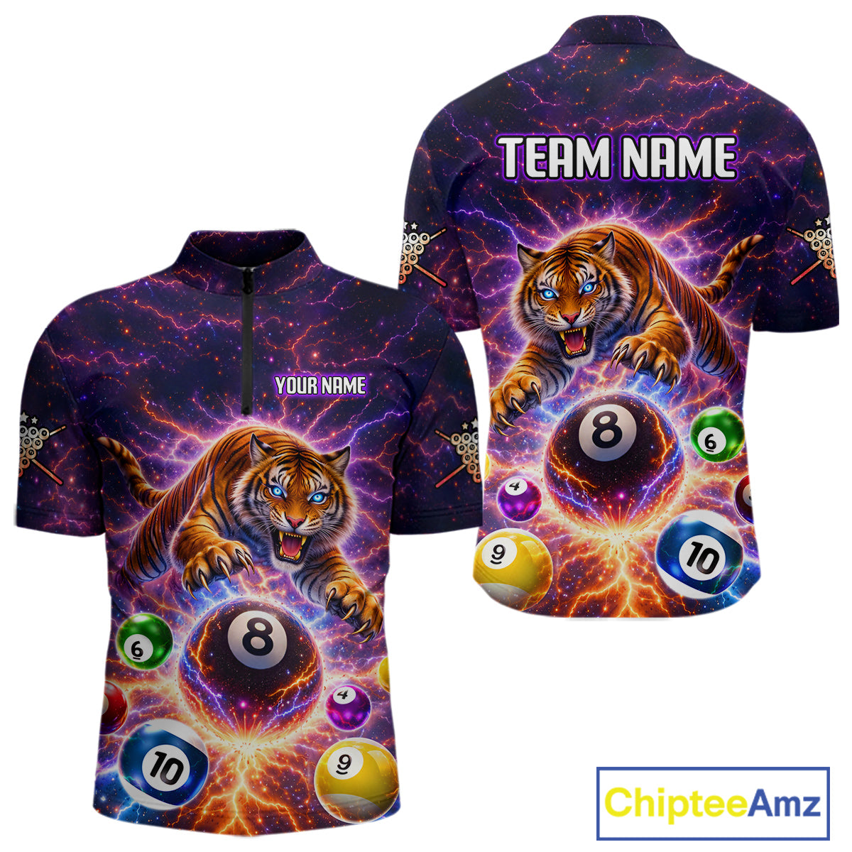 Colorful Billiard Balls Tiger Pool Shirt For Men Custom Thunder Lighting Billiard Team Jersey TDM5685