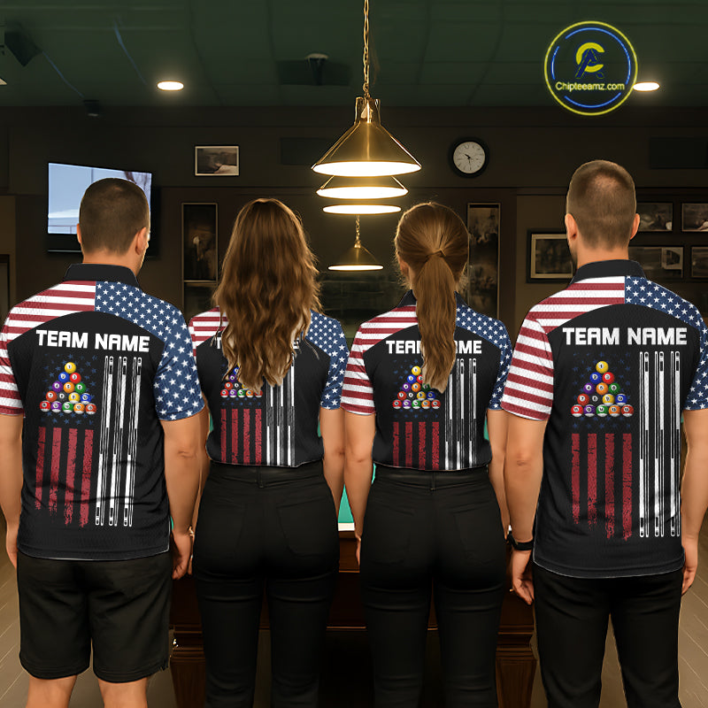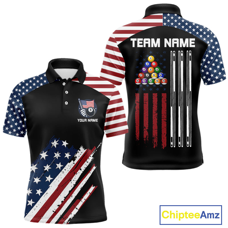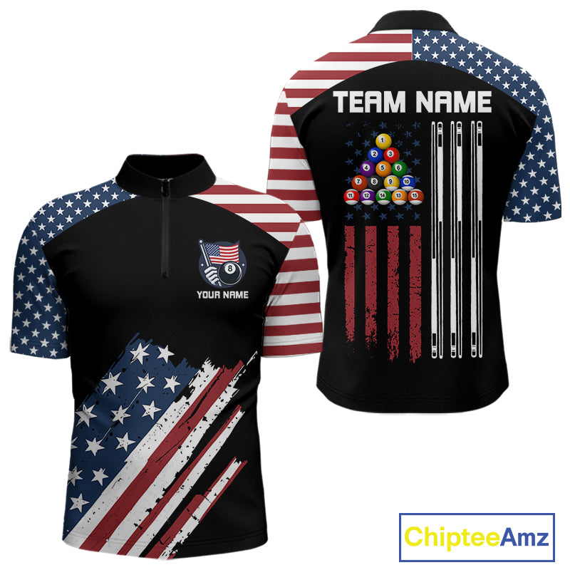Black Grunge American Flag Billiard Shirt For Men Custom Patriotic 8 Ball Pool Team Jersey TDM5688