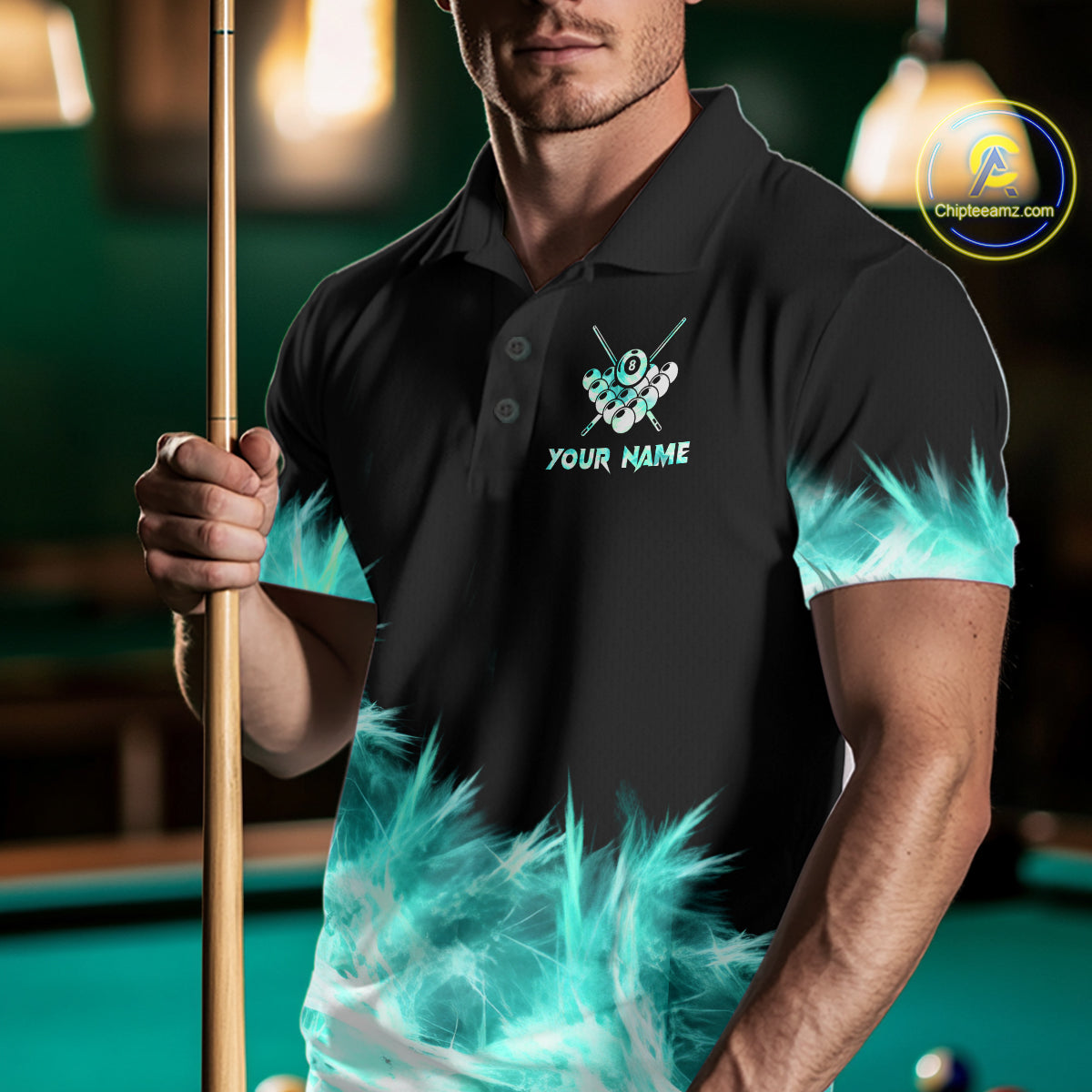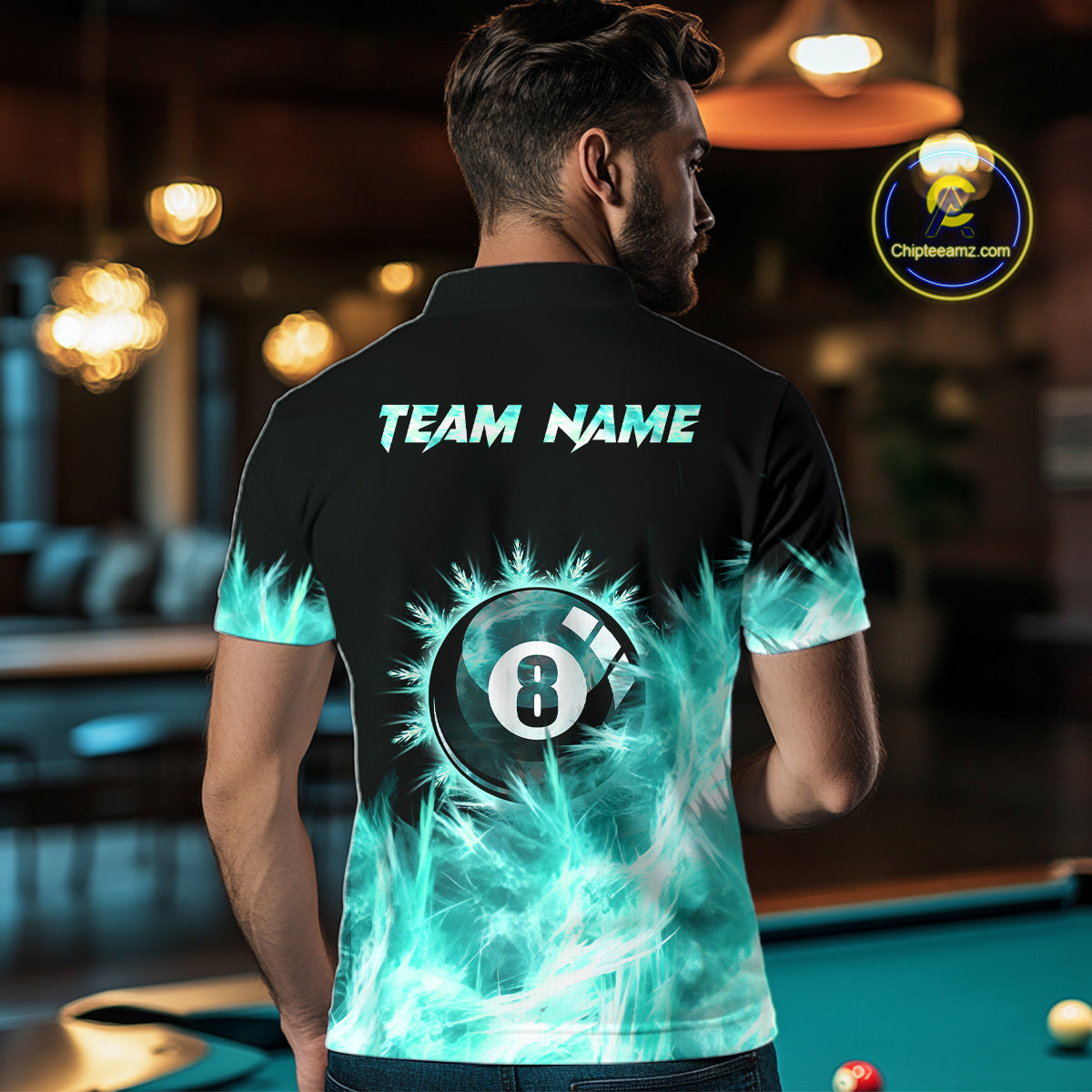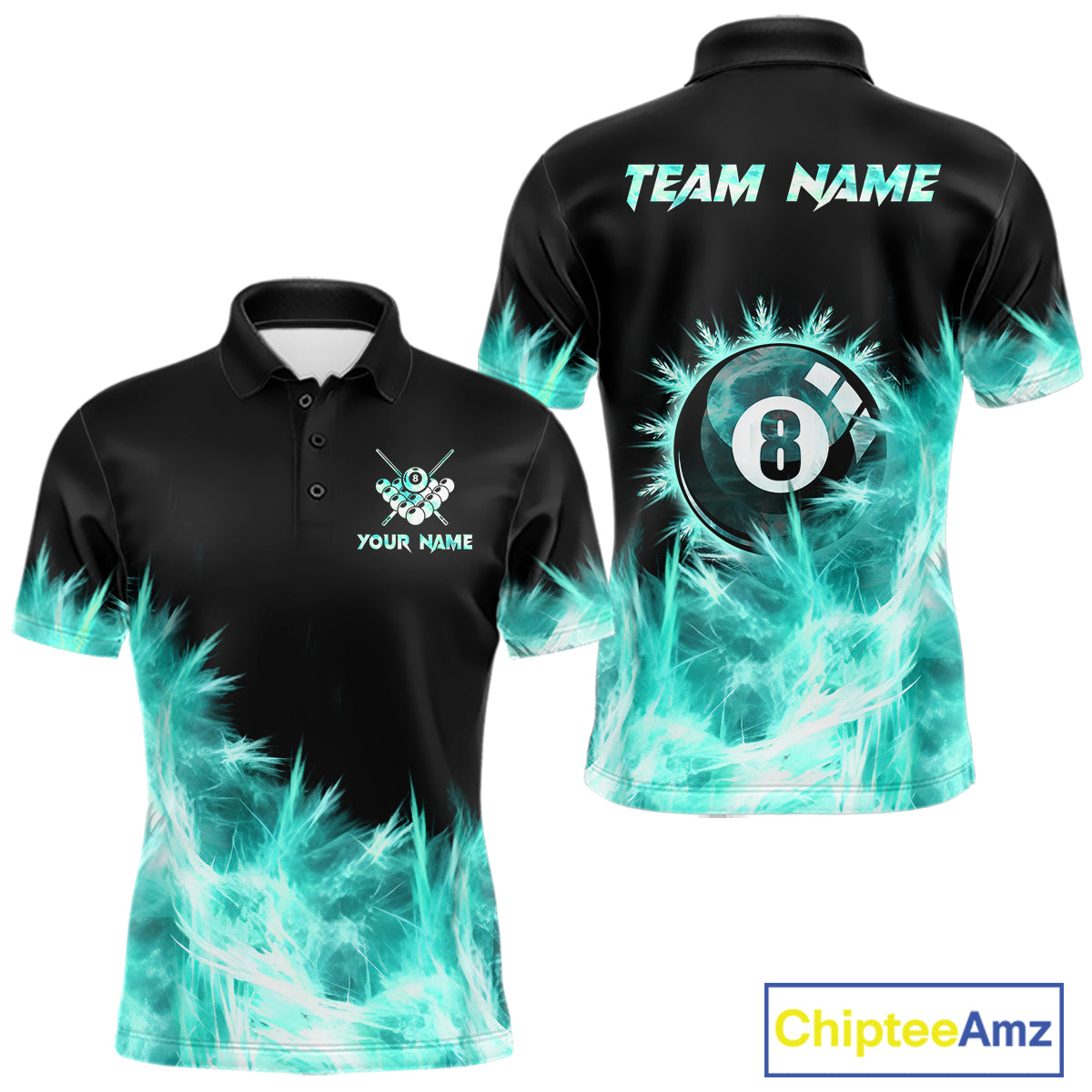 Turquoise Icy Light 8 Ball Pool Billiard Polo & 1/4 Zip For Men Custom Billiard Team Jerseys  TDM5689