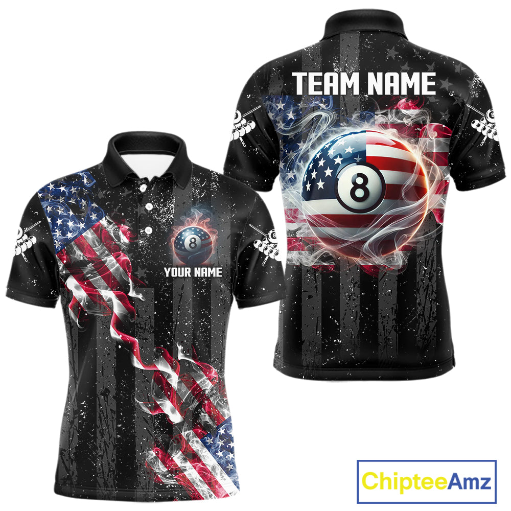 Custom US Flag Smoke 8 Ball Pool Billiard Shirt For Men, 3D Patriotic Billiard Team Jersey TDM5692