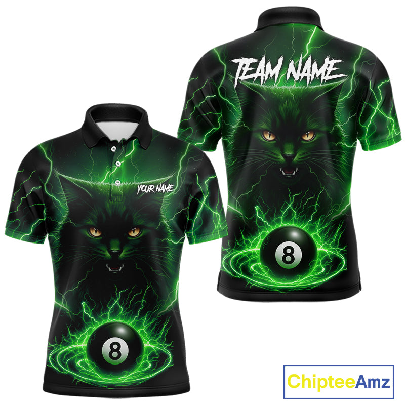 Green 8 Ball Thunder Lightning Cat Billiard Shirt For Men Custom Pool Team Jersey Polo & 1/4 Zip TDM5696