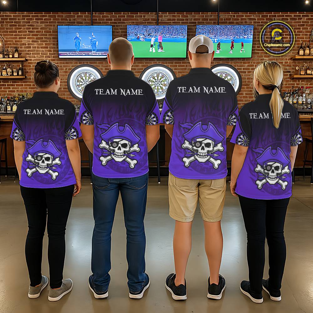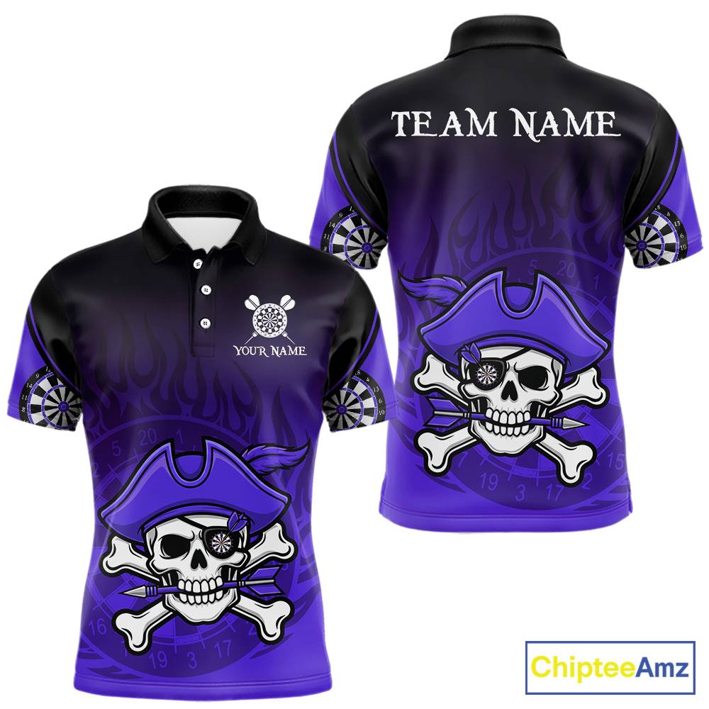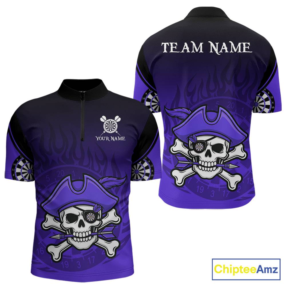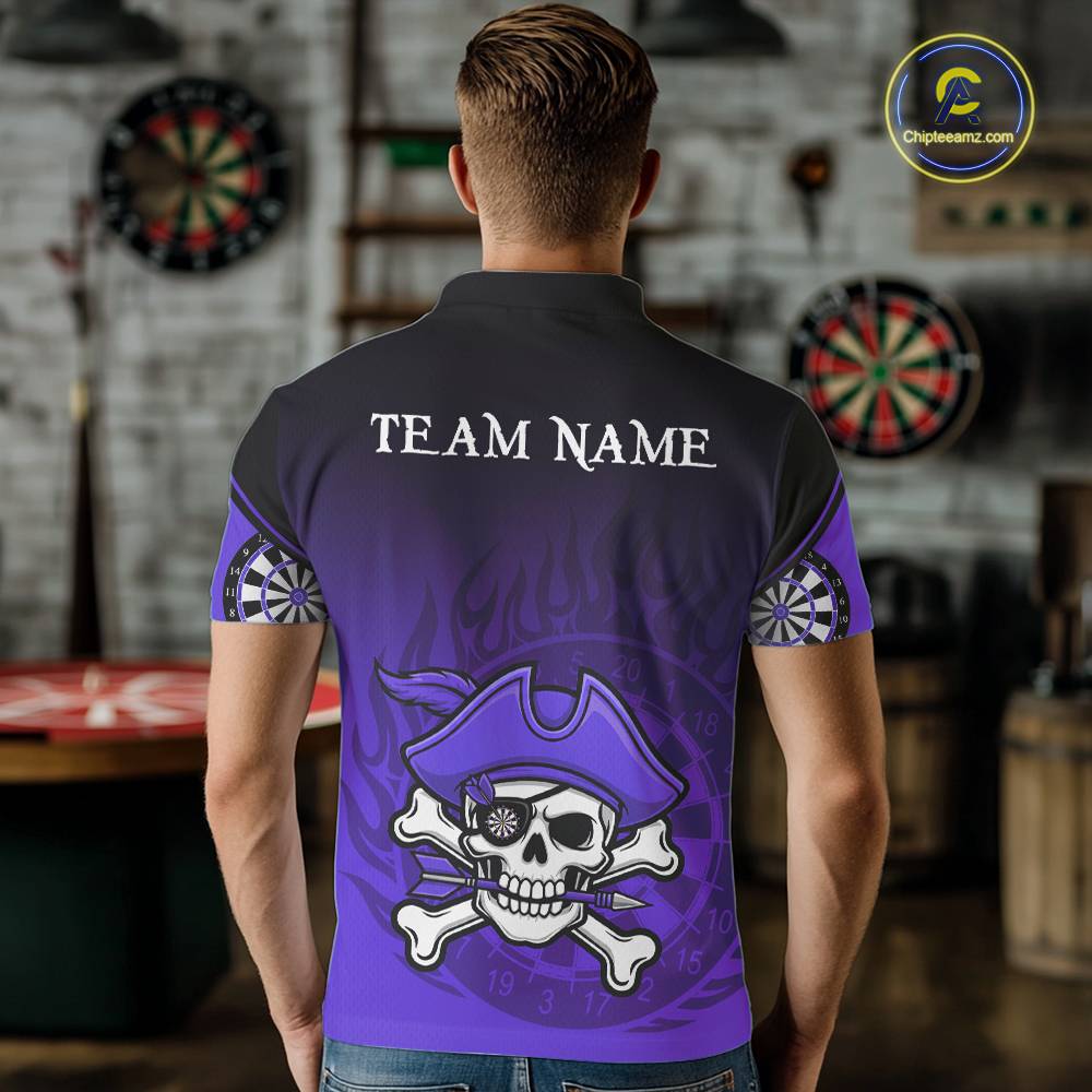 Black Purple Funny Pirate Flame Skull Darts Shirt For Men Custom Dart Jerseys Team Polo & 1/4 Zip TDM5704