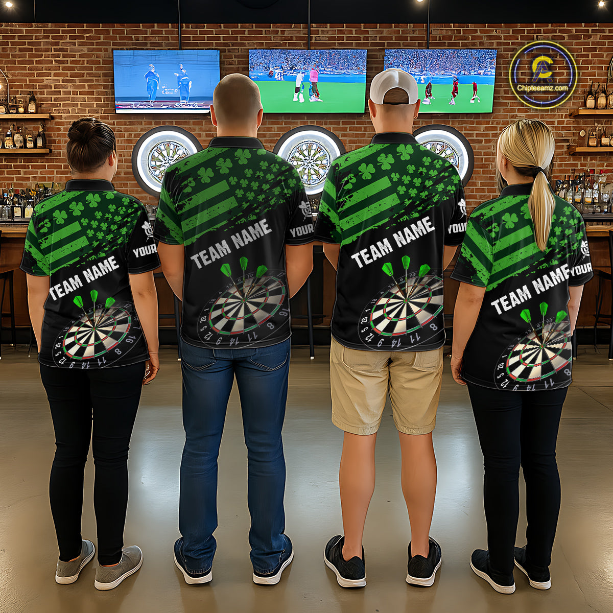 Personalized US Flag St Patrick Day Dart Shirts For Men Custom Luckiest Shamrock Darts Jerseys TDM5709