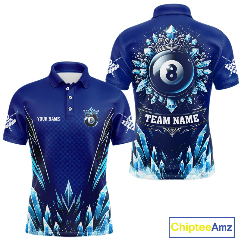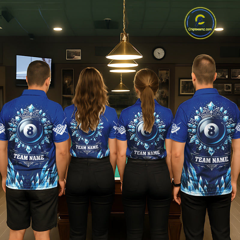 Blue 8 Ball Pool Icy Billiard Polo & 1/4 Zip For Men Custom Billiard League Team Jersey TDM5715