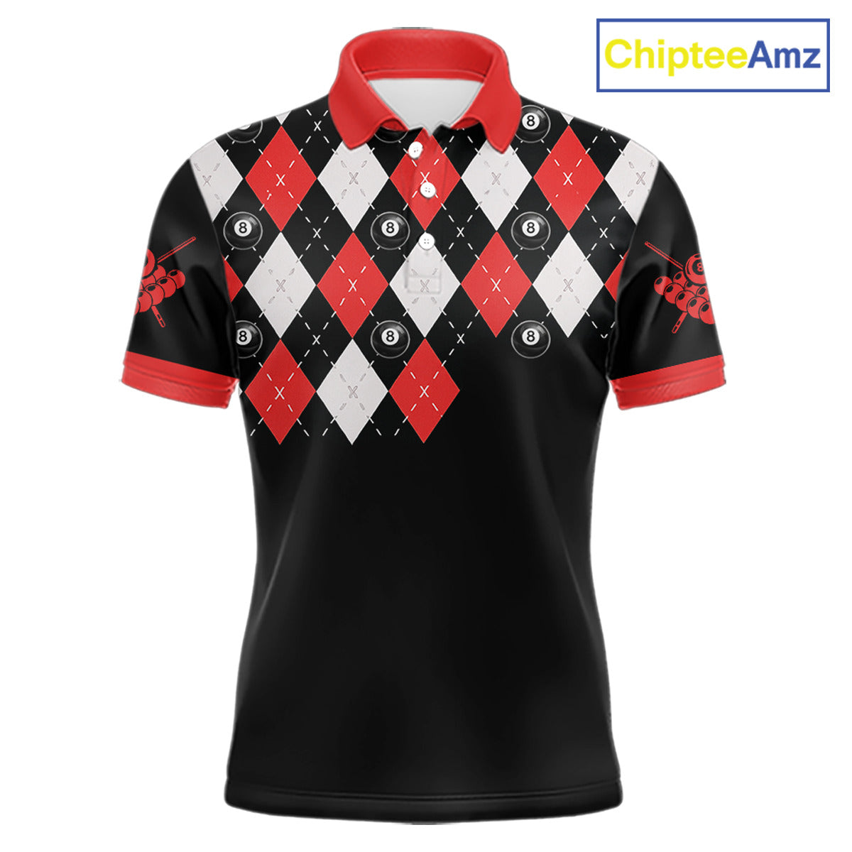 Personalized 8 Ball Pool Skull Argyle Pattern Men's Billiard Shirts, Billiard Team Jersey |Red TDM5719