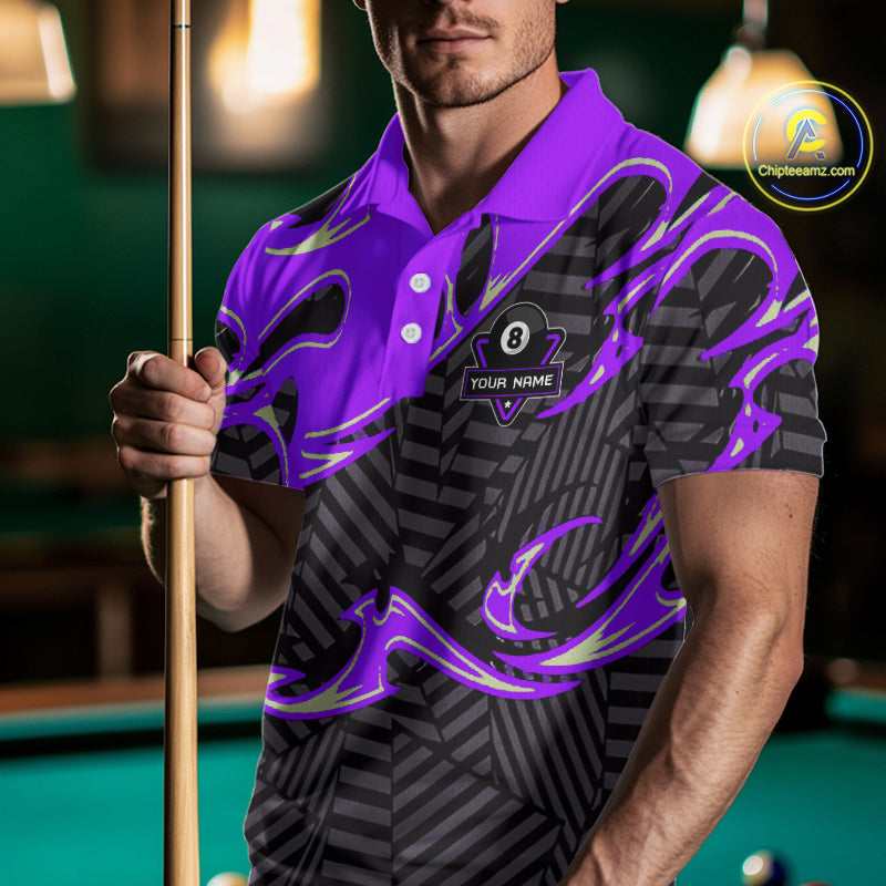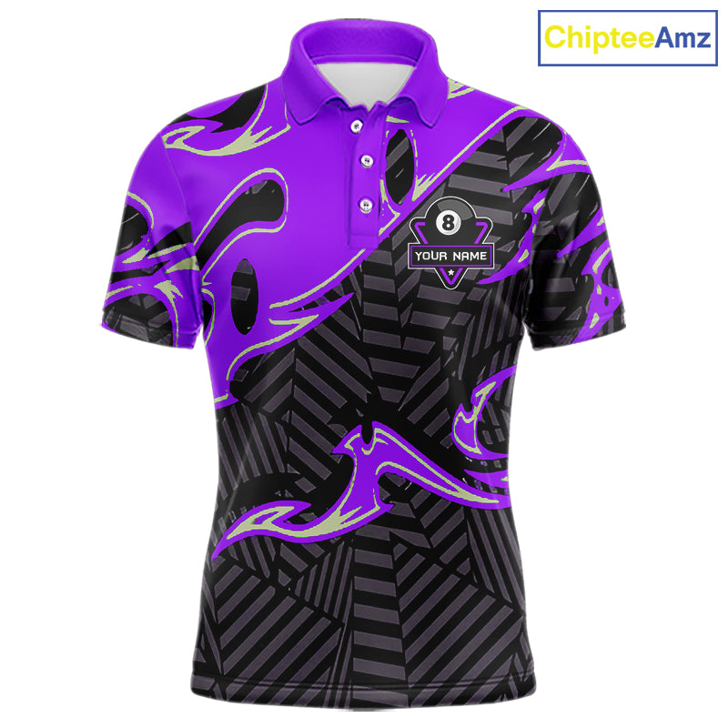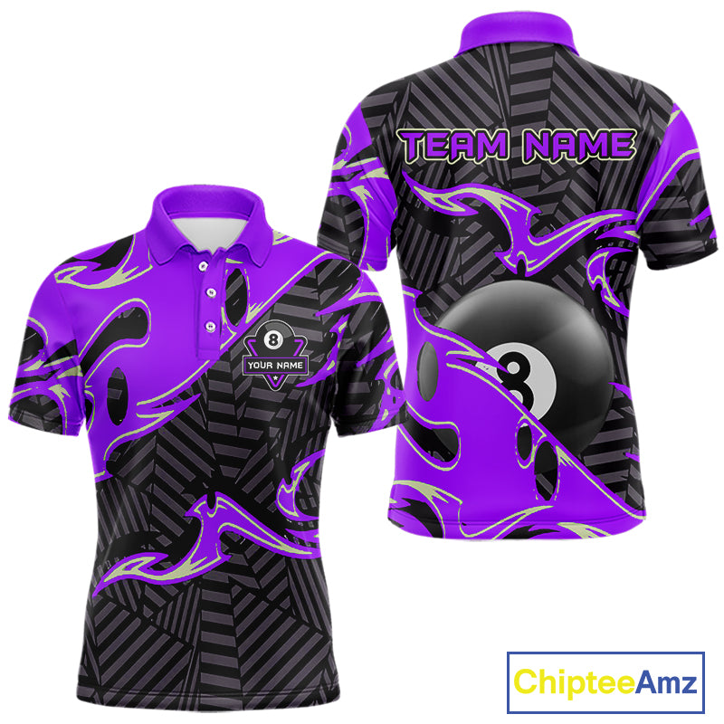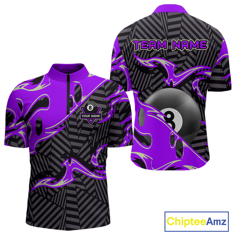 Custom Black Purple 8 Ball Tribal Flame Billiard Shirt For Men, Pool Team Jersey Polo & 1/4 Zip TDM5723