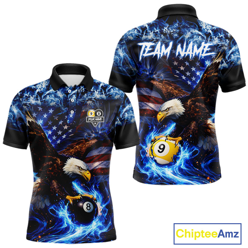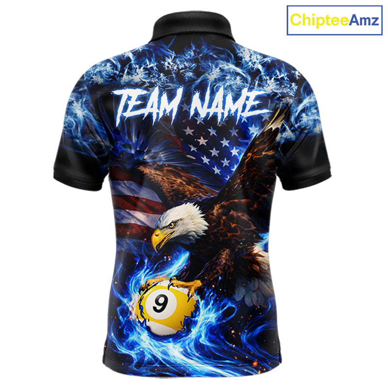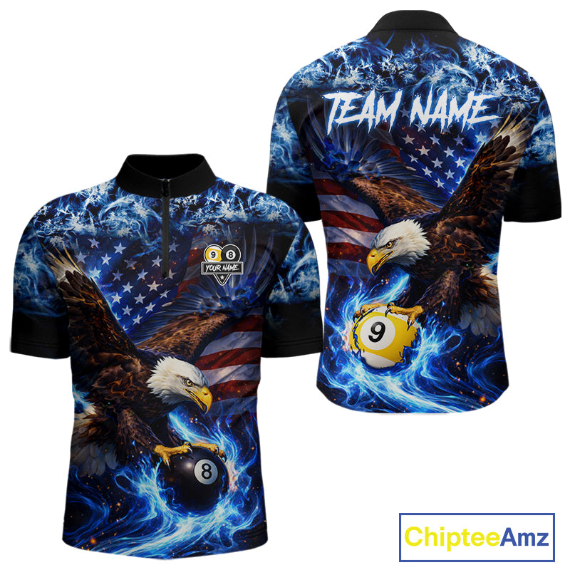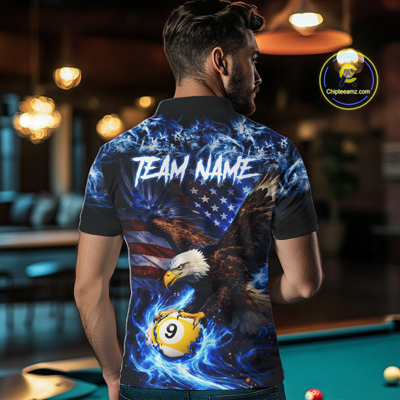 Blue Flaming Eagle 8 Ball 9 Ball Pool Billiard Shirt For Men Custom American Flag Billiard Jersey TDM5729