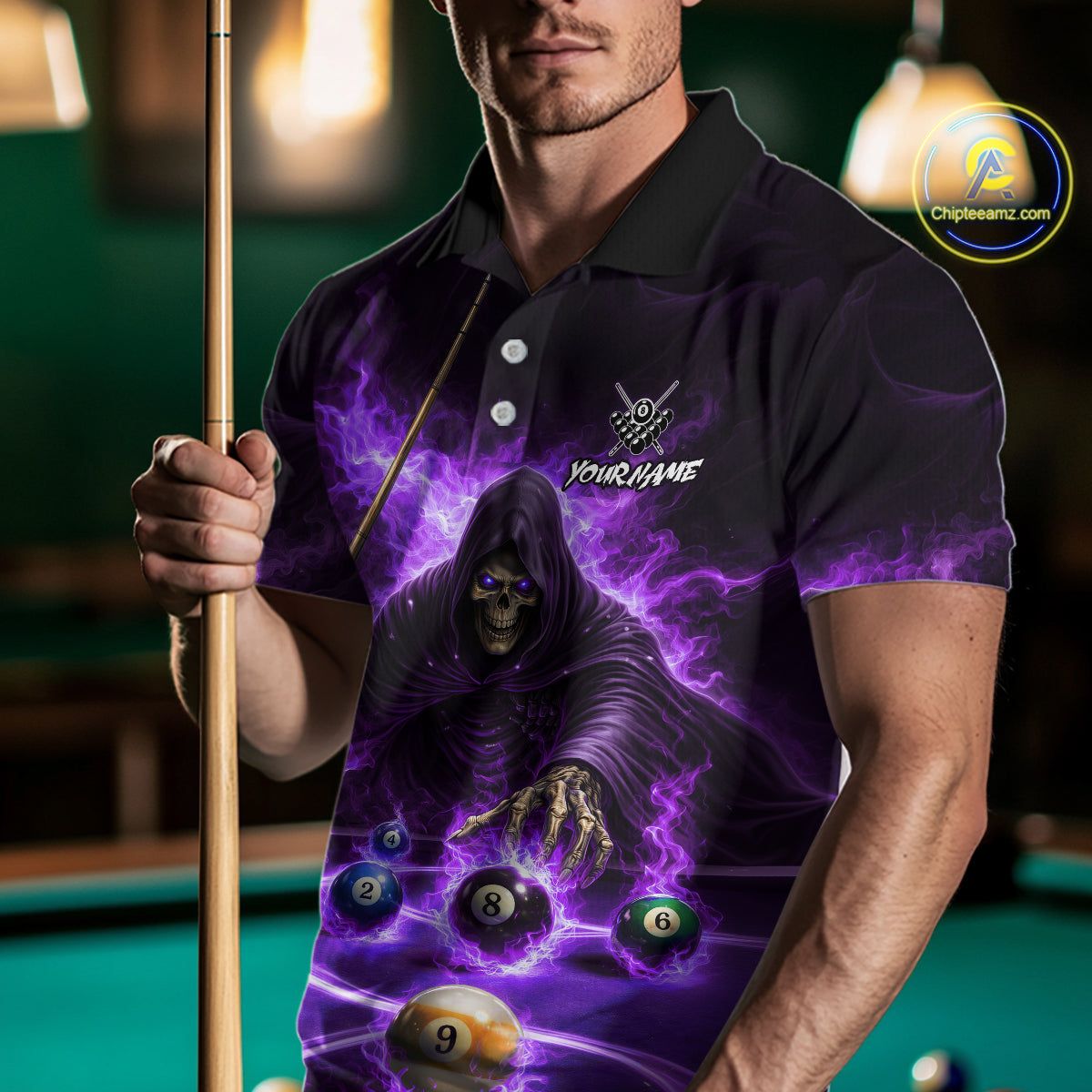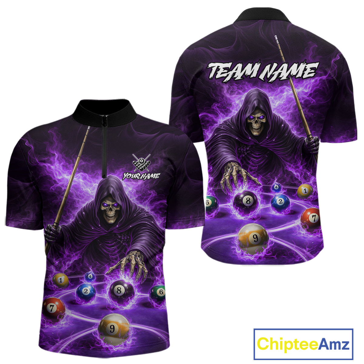 Purple Flaming Grim Reaper Billiard Shirt For Men Custom Pool Team Jersey Polo & Quarter Zip Shirt TDM5739