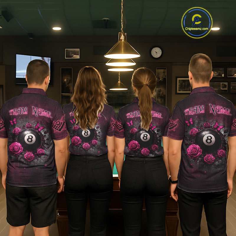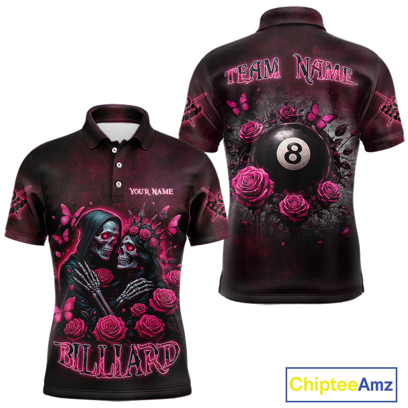 Customized Skeleton And Roses Gothic Romance Billiard Shirt For Men, Valentine 8 Ball Pool Jersey TDM5749