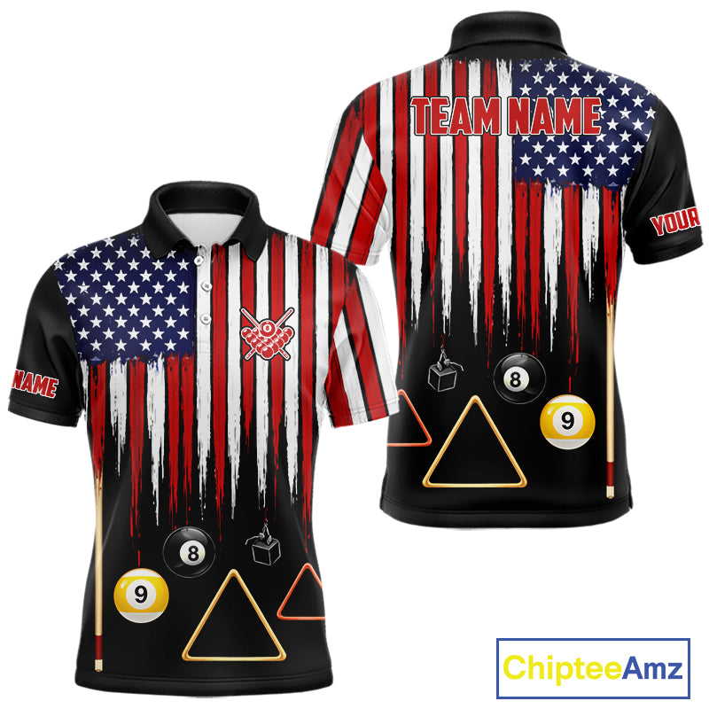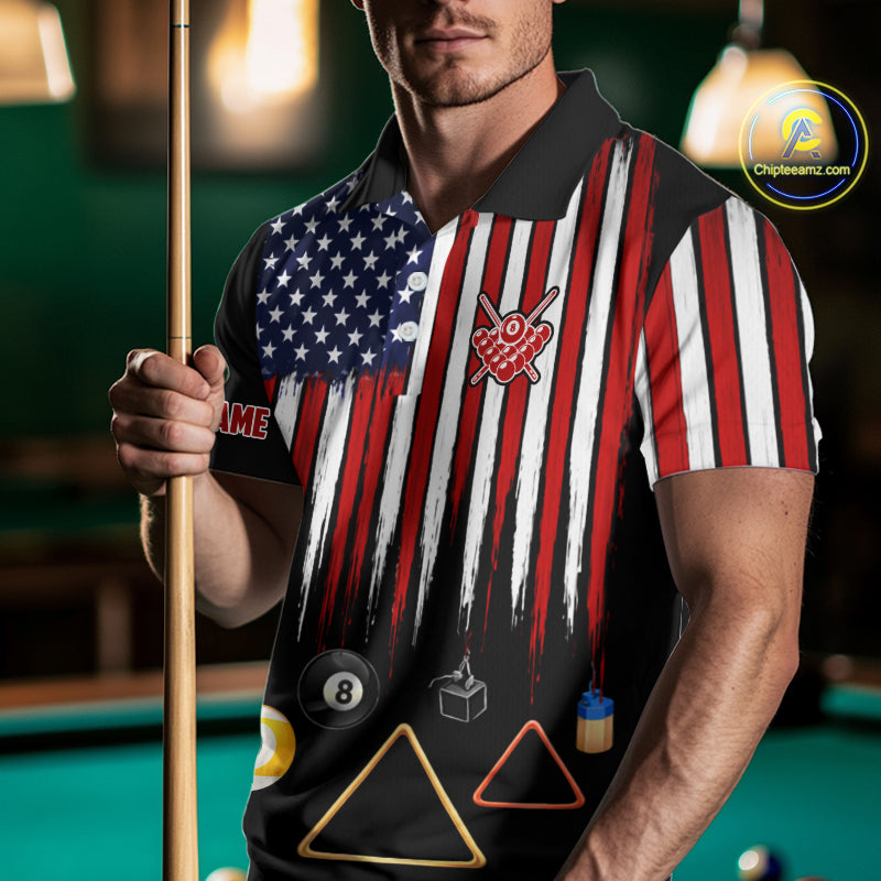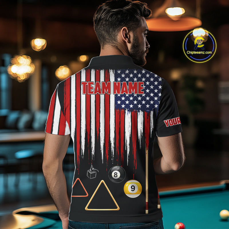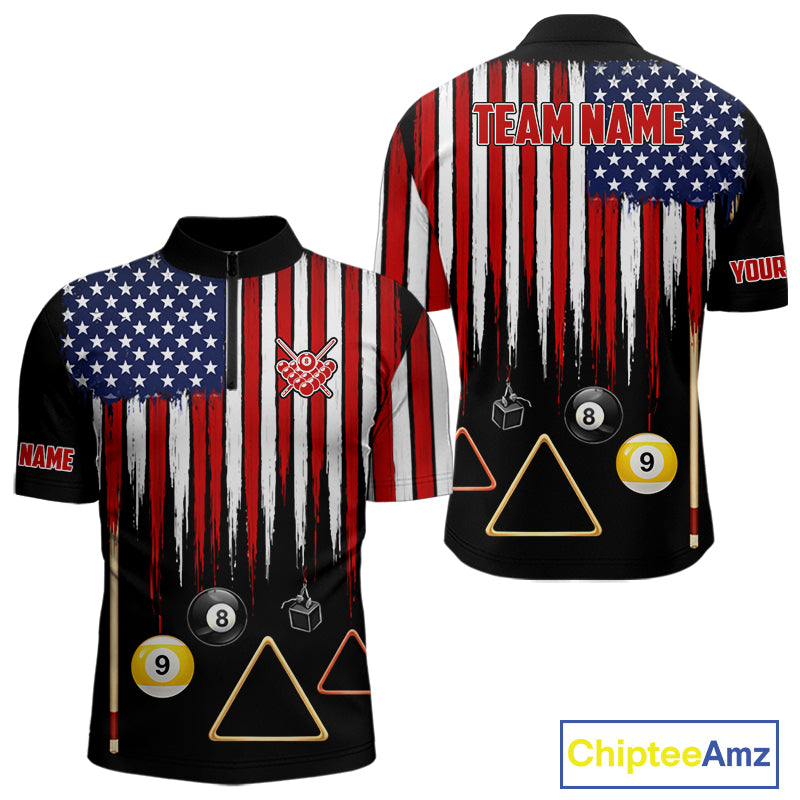 American Flag Billiard Shirt For Men Custom Patriotic Pool Team Jersey Polo & 1/4 Zip |Black TDM5752