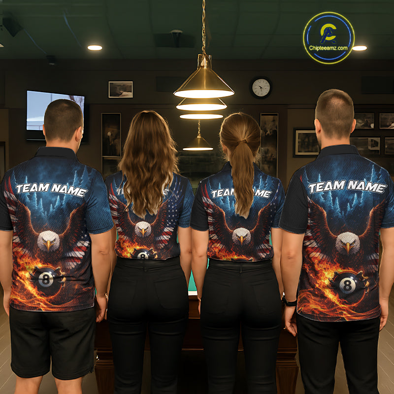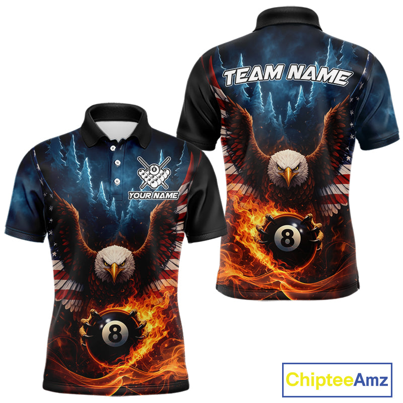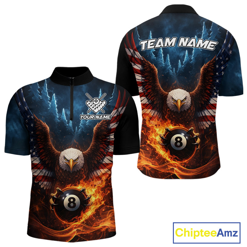 American Flag Eagle 8 Ball Flame Billiard Shirt For Men Custom Patriotic Pool Jersey Polo, 1/4 Zip TDM5754