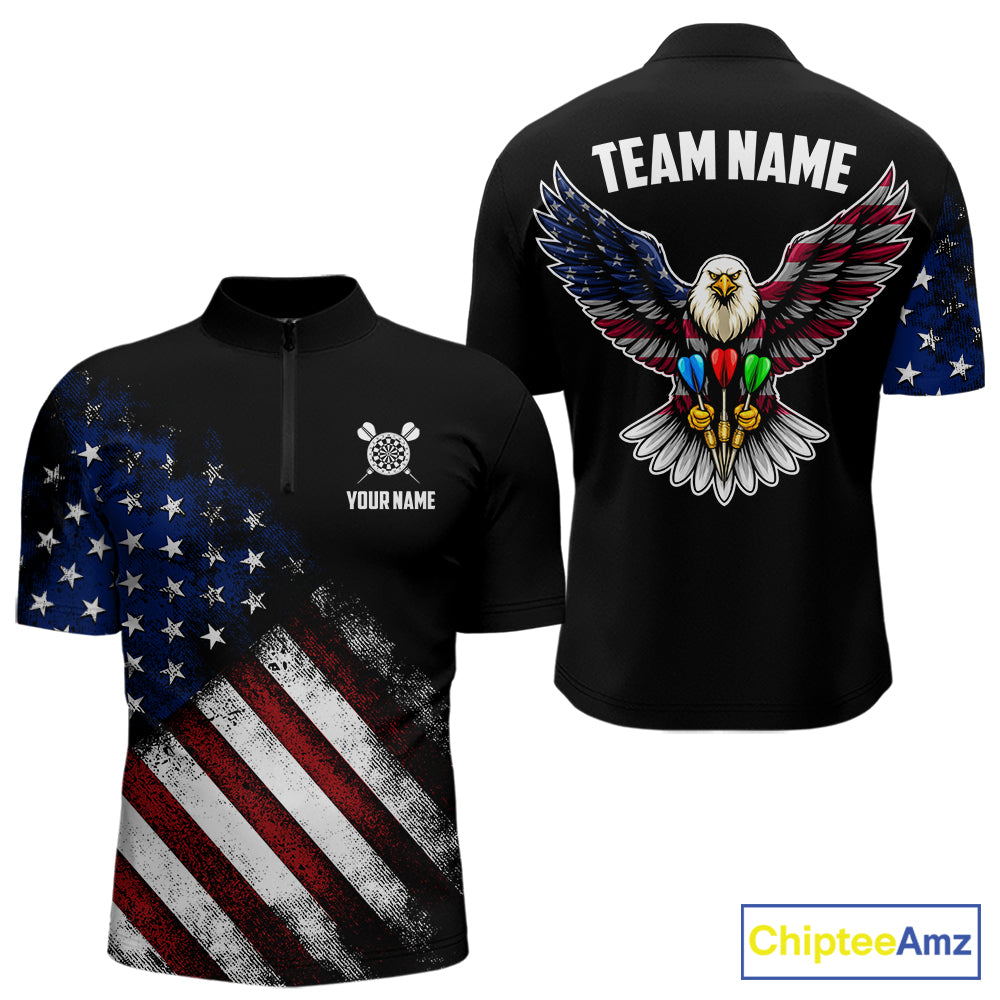 Patriotic American Flag Eagle Darts Shirt For Men Custom Darts Jersey Team Polo & 1/4 Zip TDM5759