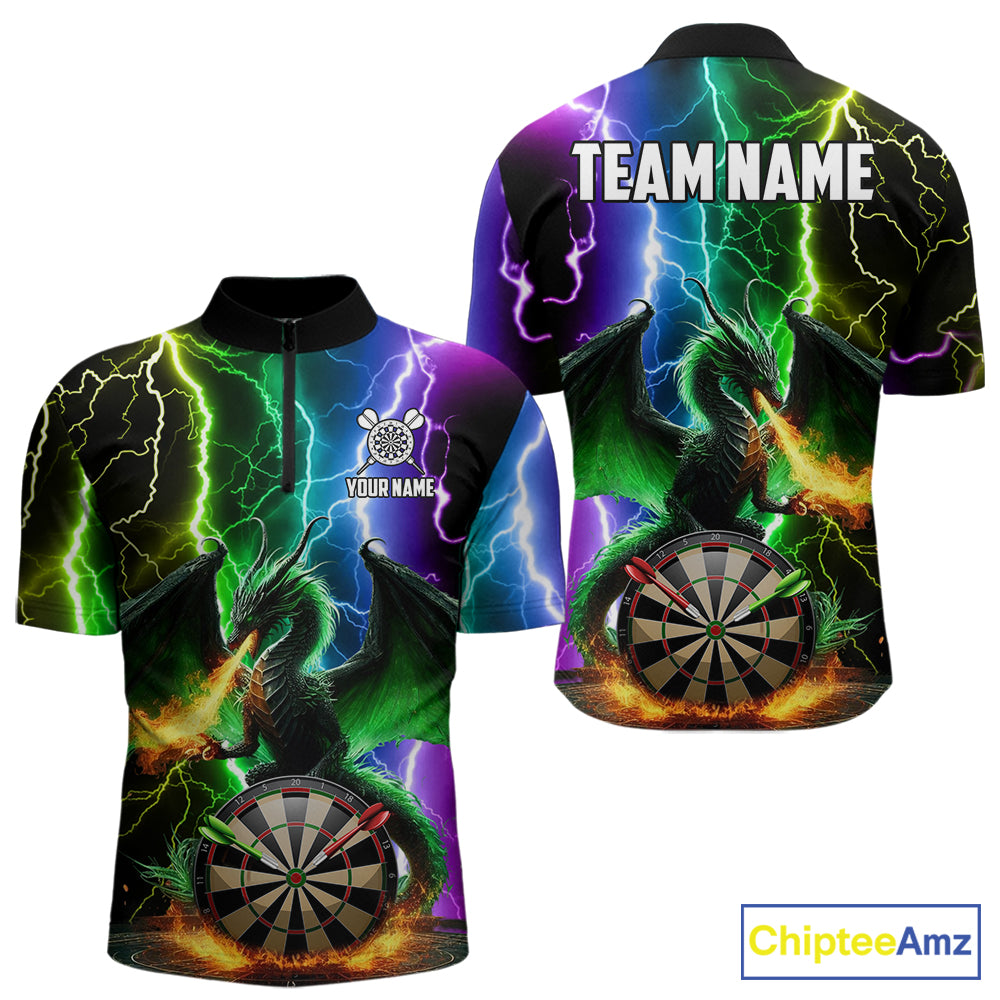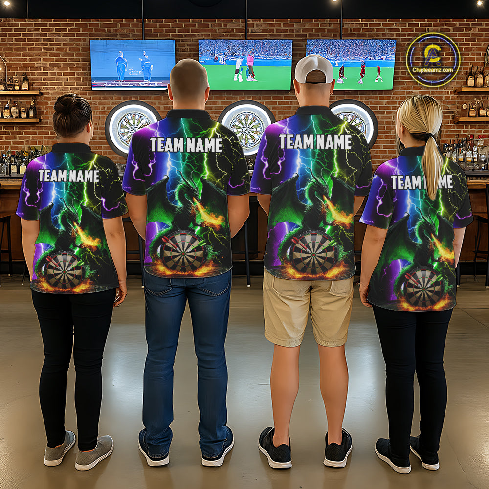 Colorful Lightning Dragon Darts Shirt For Men Custom Darts League Jersey Team Polo & 1/4 Zip TDM5761
