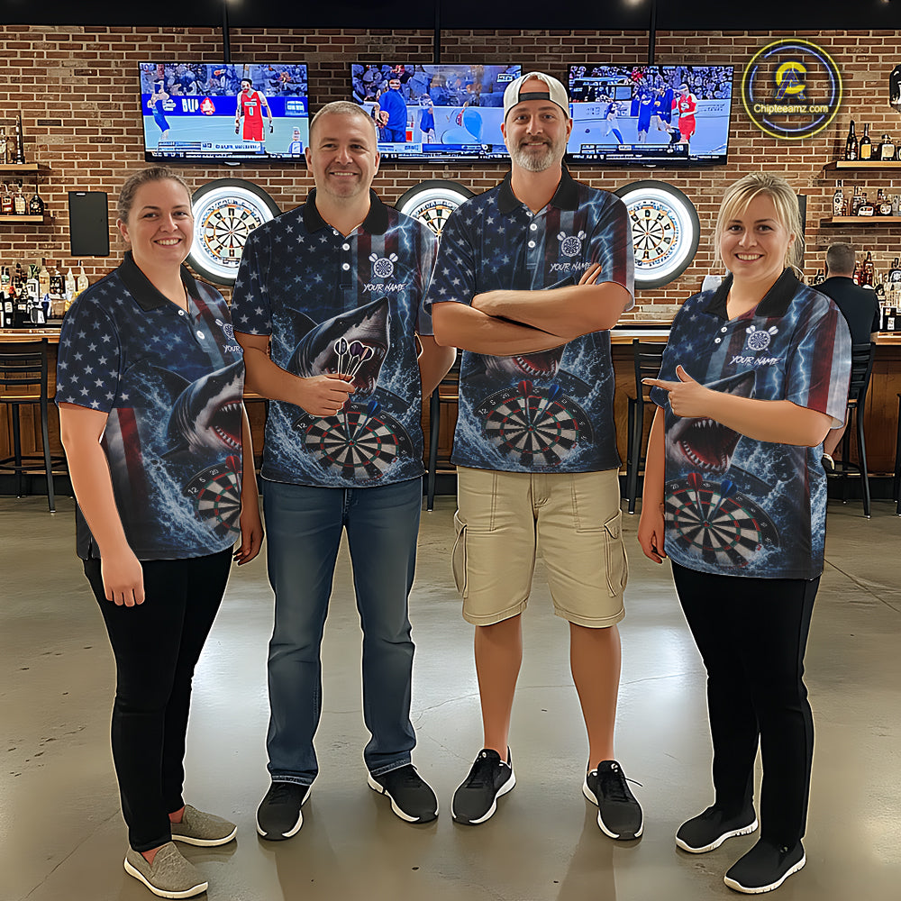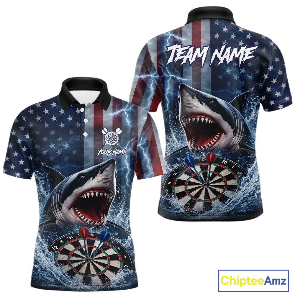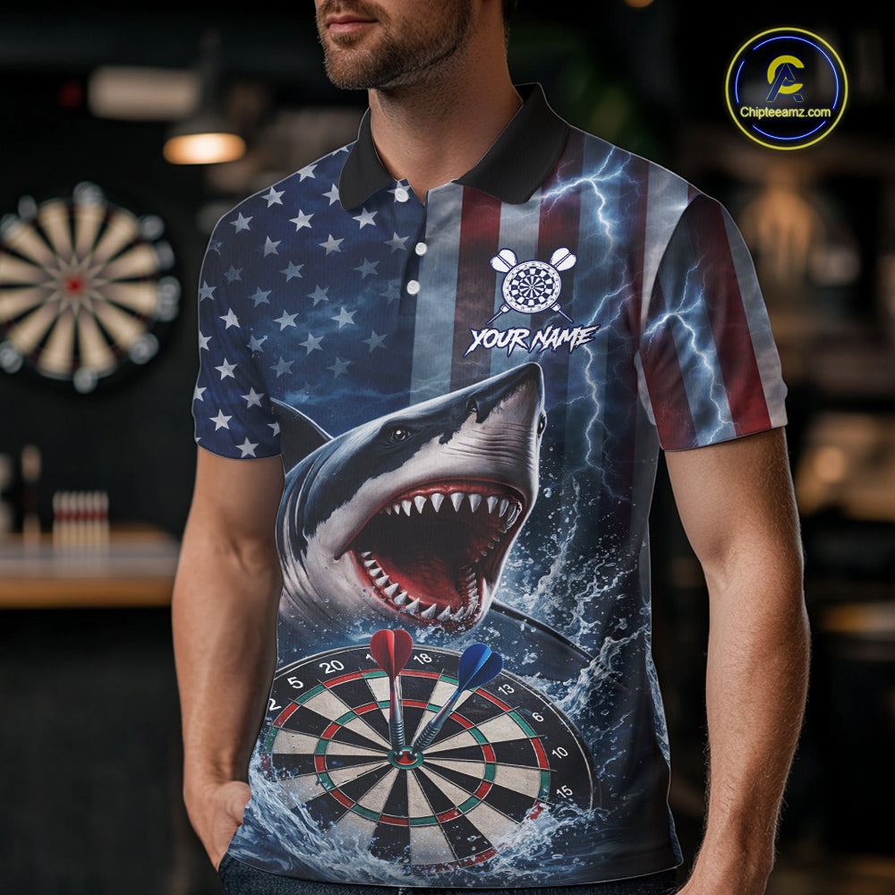 American Flag Shark Darts Shirt For Men Custom Lightning Patriotic Dart Jersey Team Polo & 1/4 Zip TDM5771