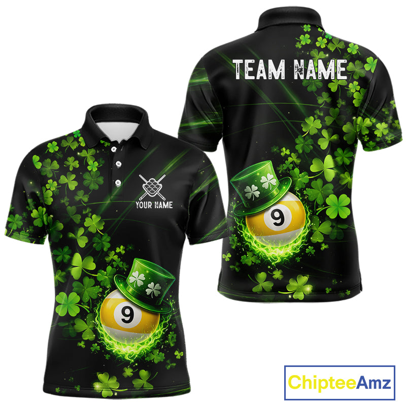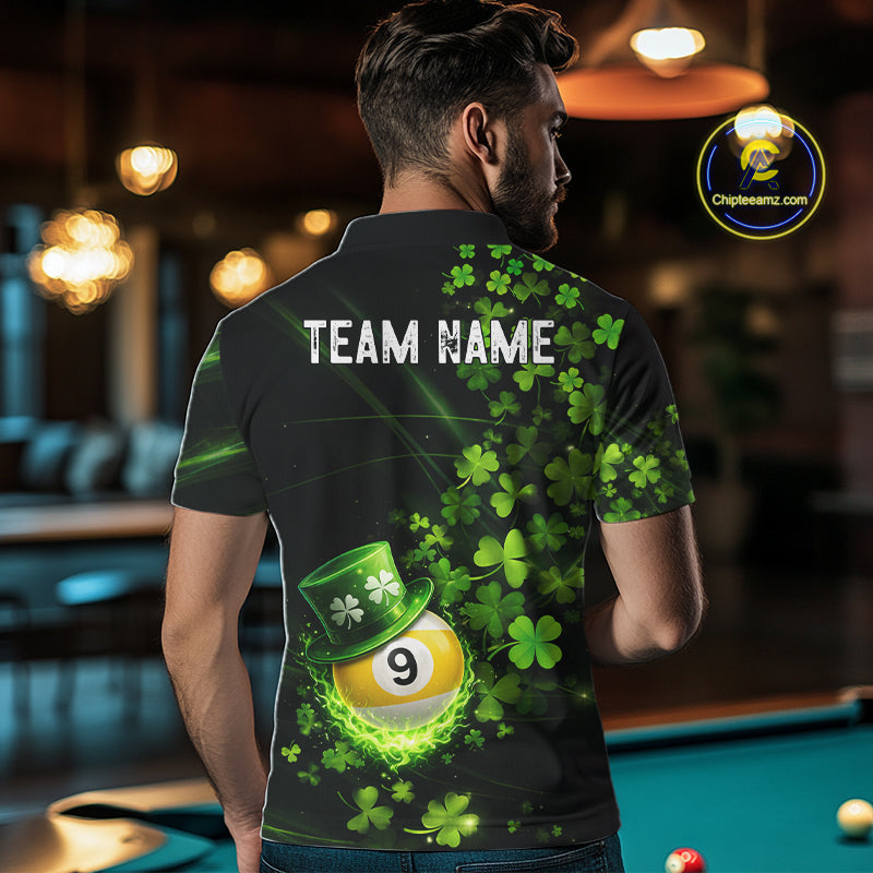 Green Luckiest Shamrock 9 Ball Billiard Shirt For Men Custom St Patrick Day Pool Team Jersey TDM5779
