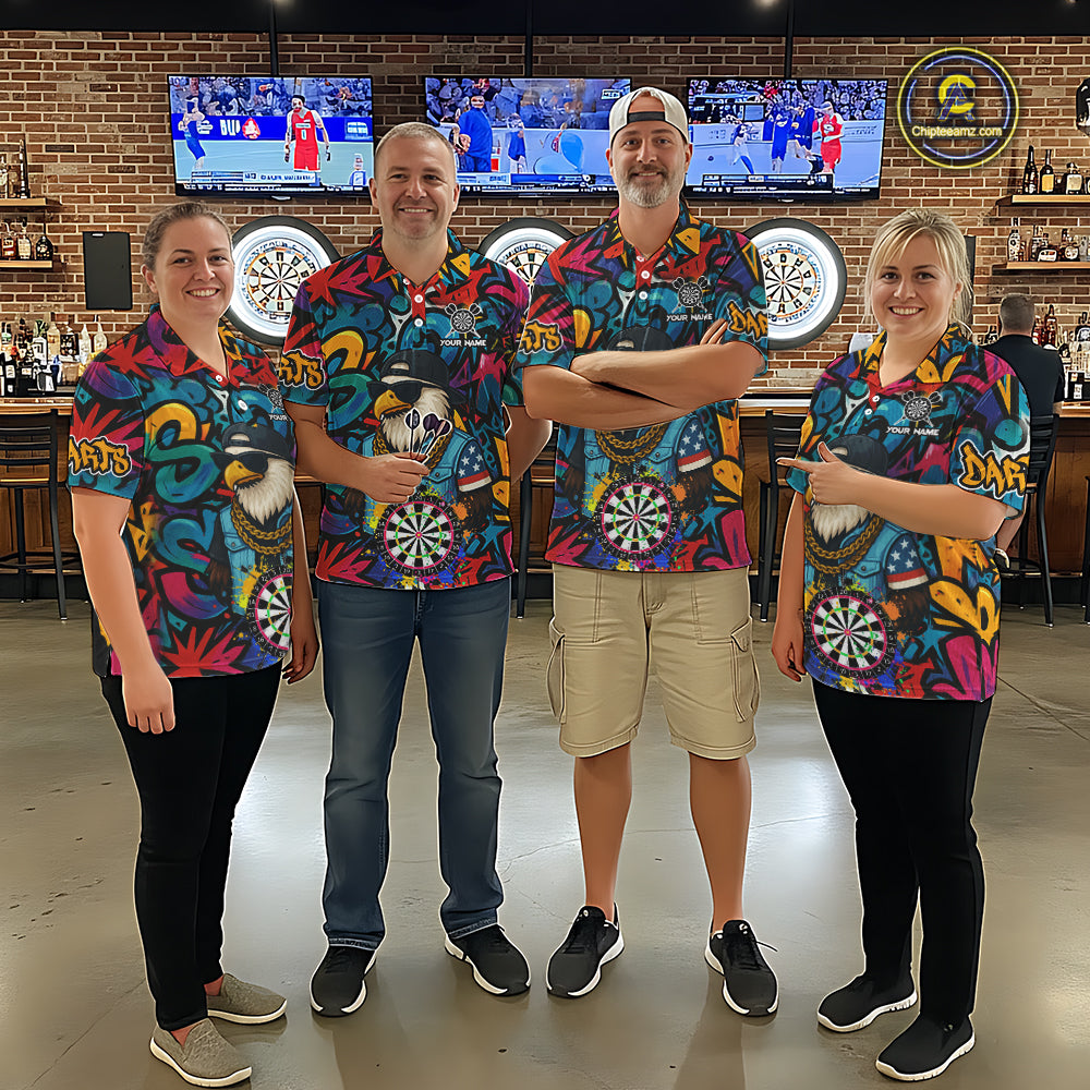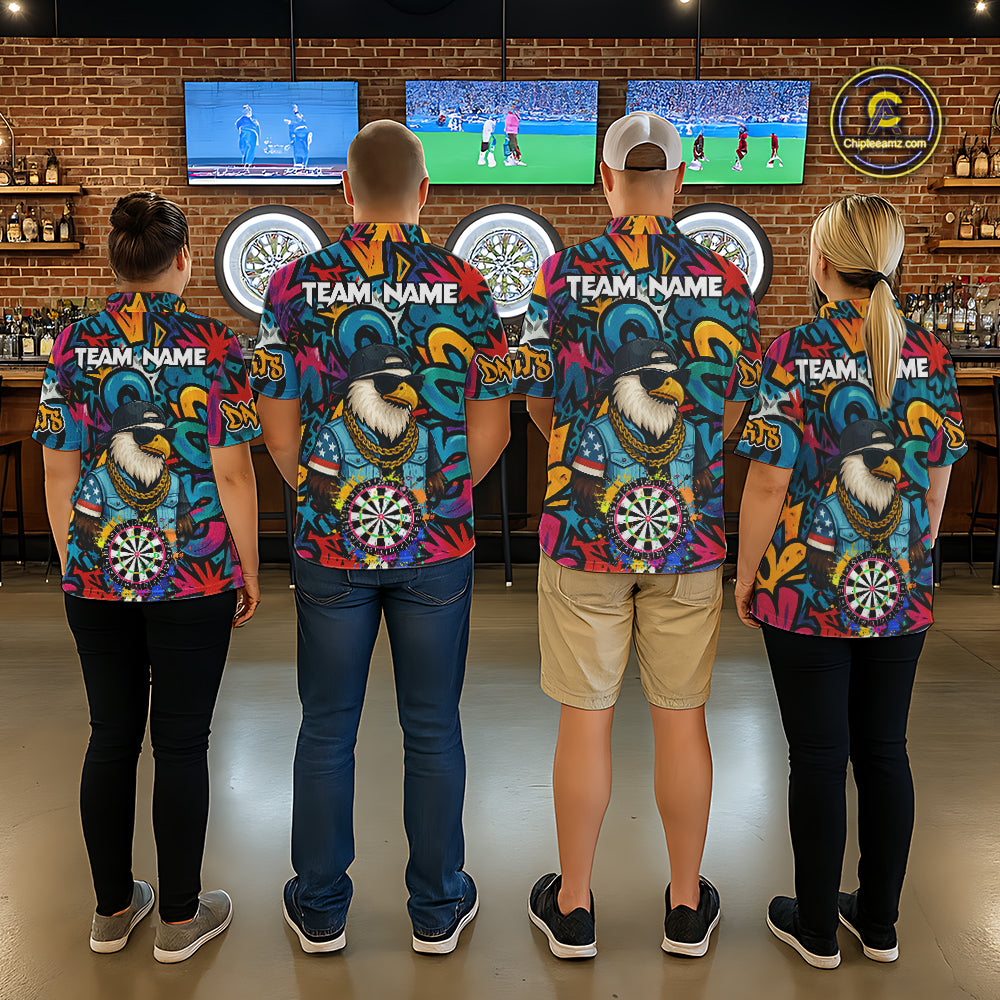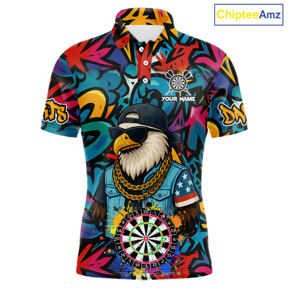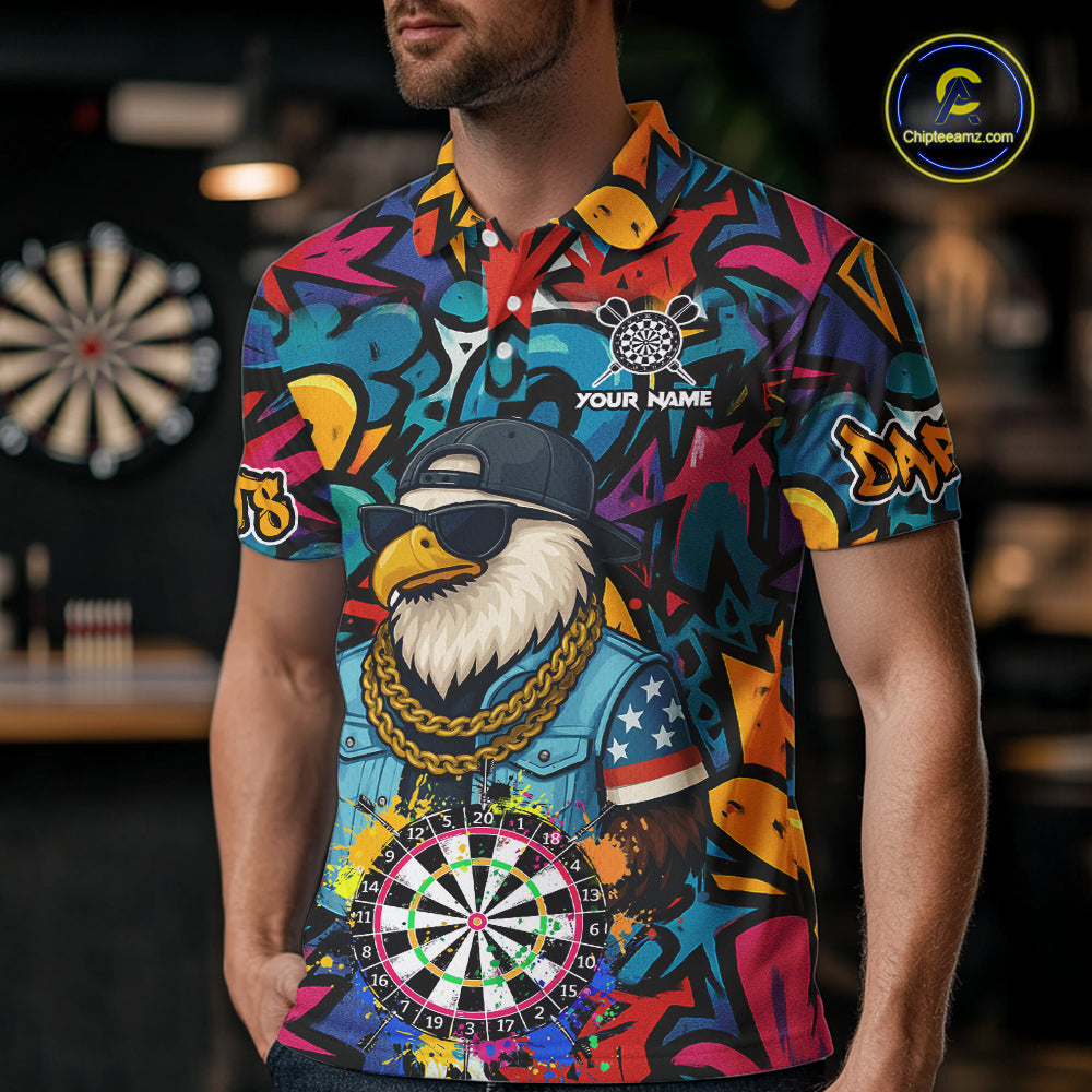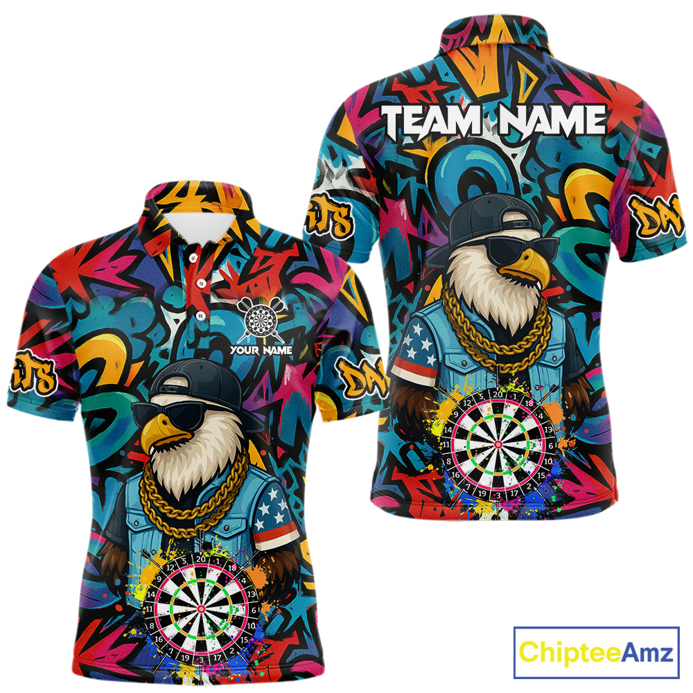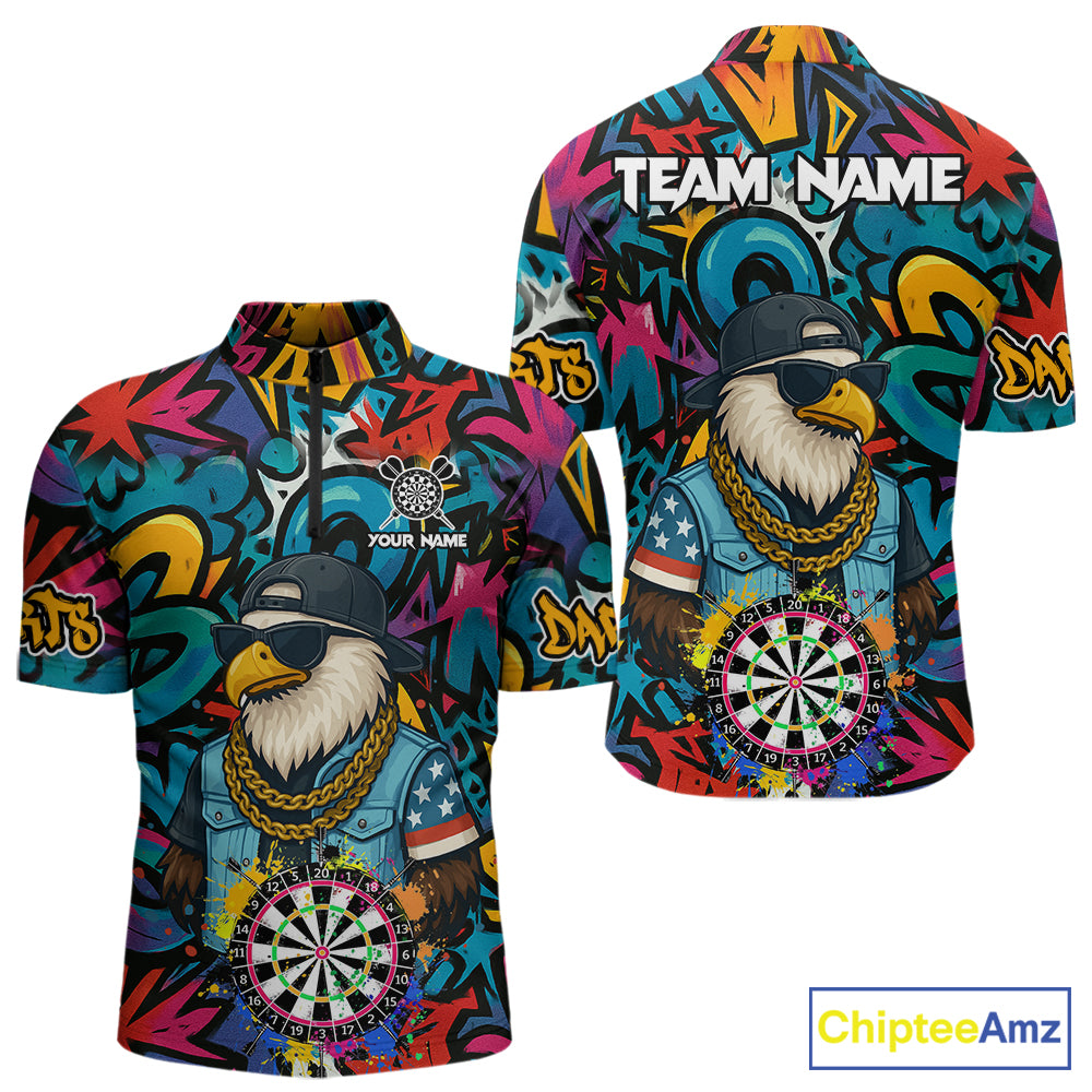 Funny Eagle Colorful Graffiti Darts Shirt For Men Custom Darts Jersey Team Polo & 1/4 Zip TDM5783