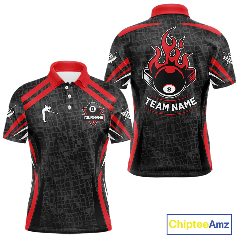 Black And Red 8 Ball Flame Billiard Shirt For Men Custom Pool Team Shirt, Billiard Jersey TDM5790